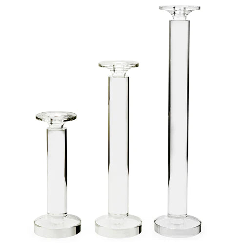 The exquisite hand-cut and polished crystal pieces are designed to be adored. Each one hand-crafted by an artisan master with a passion for creating an elegant fusion of classic and contemporary design. The trinity of crystal pillar candle holders are designed in three stately heights to create a distinctly elegant centrepiece when grouped together.