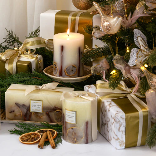 Would it be Christmas without a Botanical elements candle featuring in your room setting? We think not, so have created a beautifully fragranced, elegant rectangular candle with hand placed botanical elements for you to enjoy.