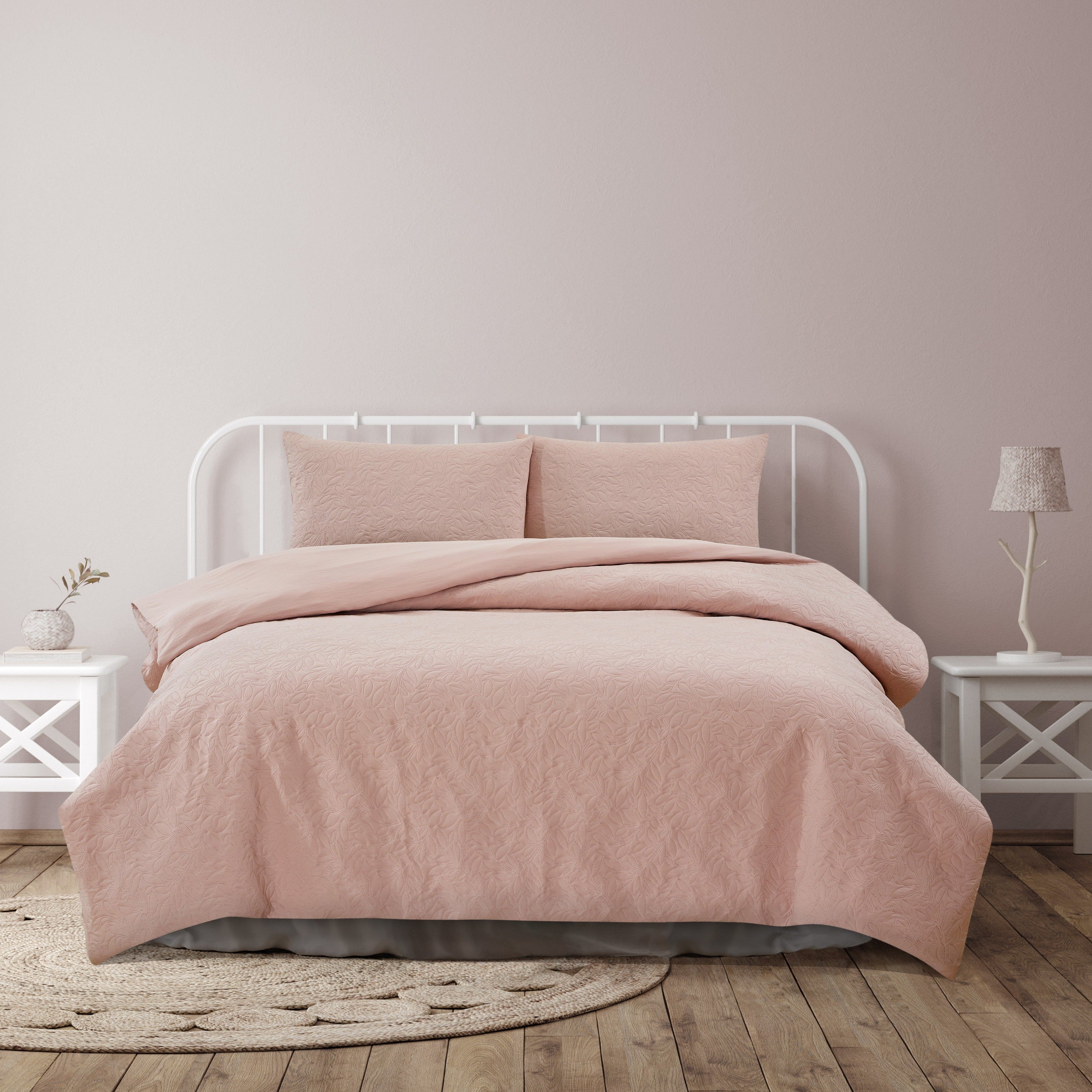 Lottie Quilt Cover Set inspires a feminine style. The trailing foliage embossed pattern on soft fabric, is available in a Blush hue; Lottie is a great way to add finer details to your bedroom.