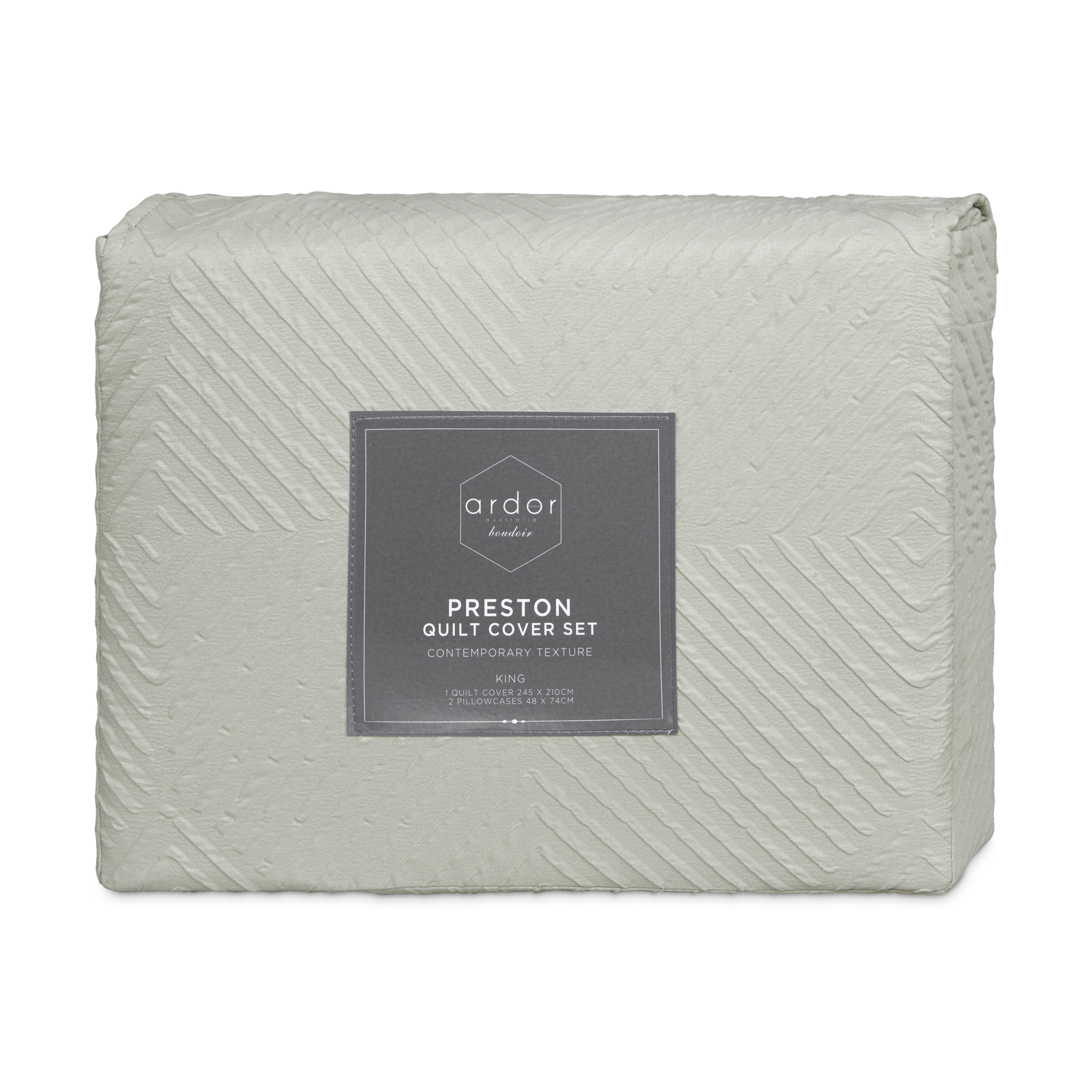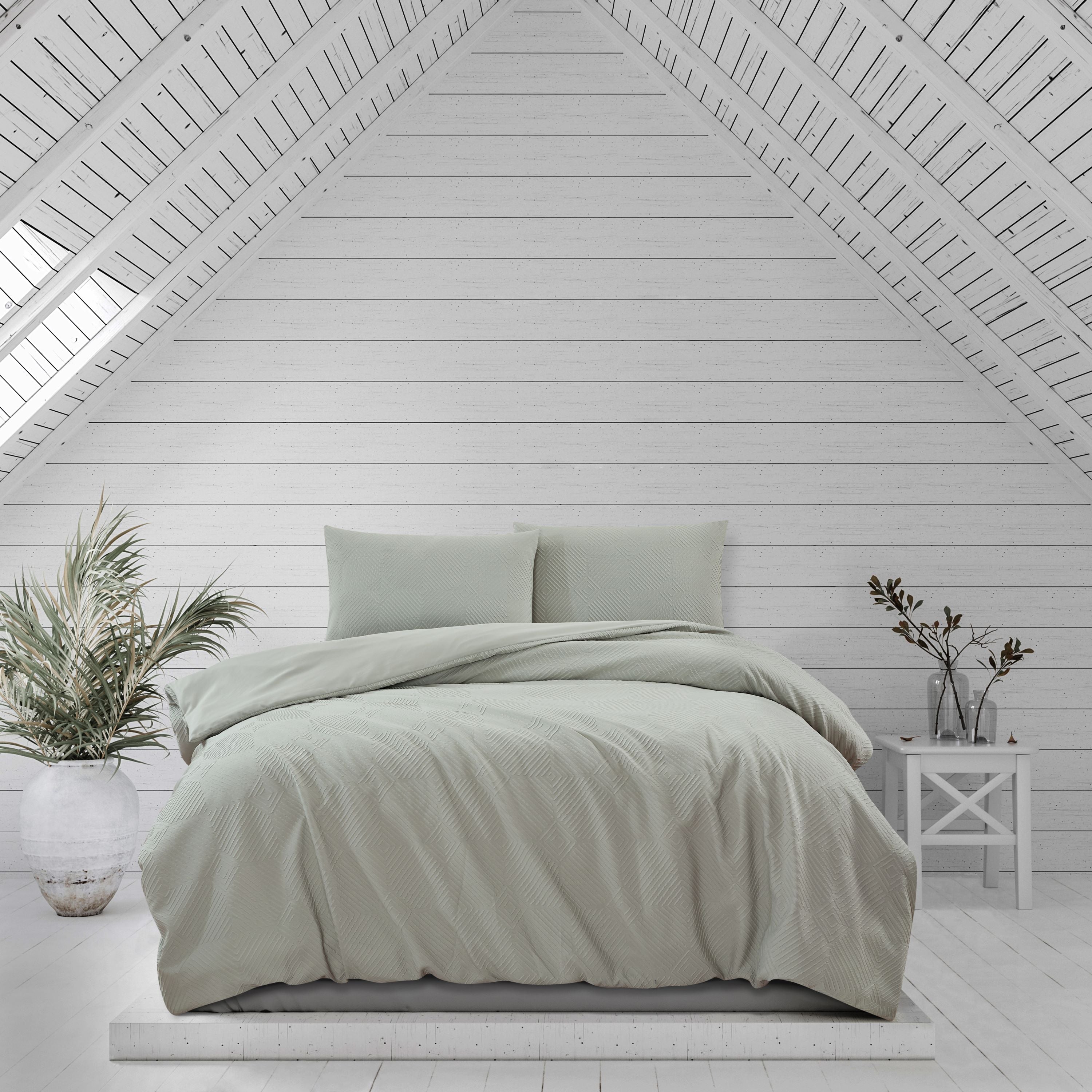 Preston Pale Green Embossed Quilt Cover Set by Ardor
