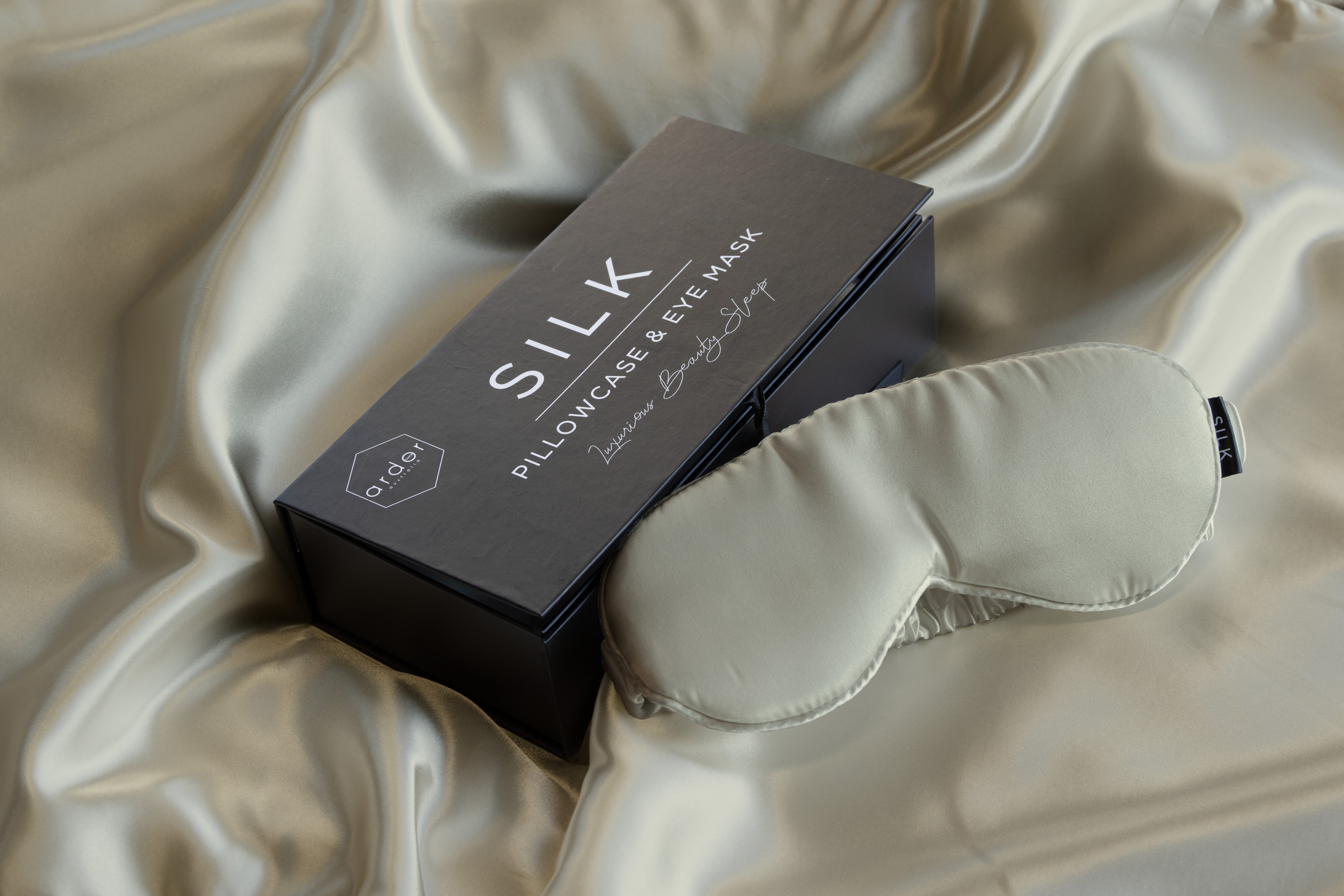 Enjoy the luxurious benefits of silk with the Ardor ultimate gift set. Rest your eyes with this soft gentle 100% mulberry silk eye as you lay on a soft silk-satin pillowcase known to be gentle on your skin.