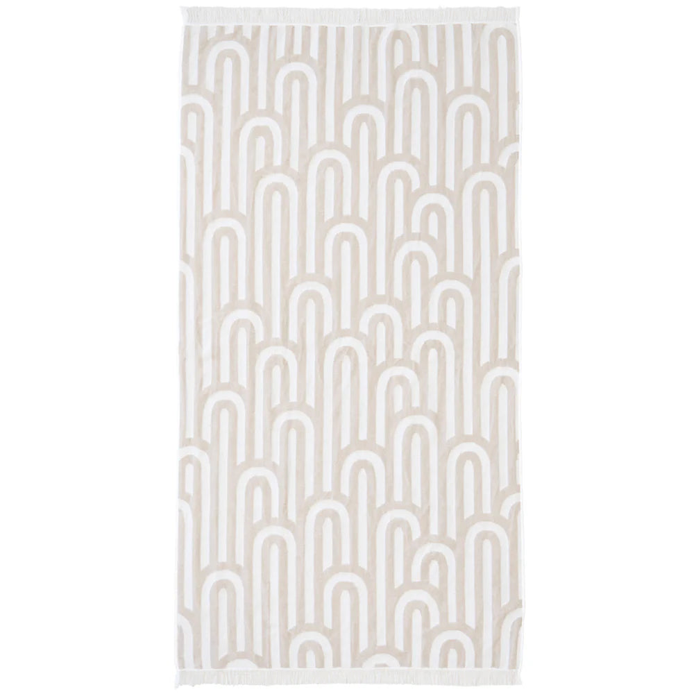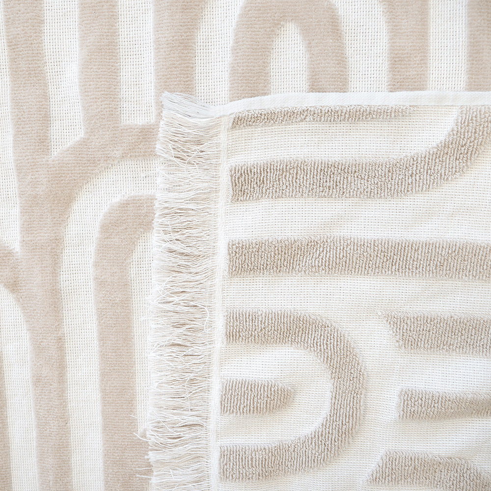 This cotton beach towel is an ideal accessory for the beach or pool. It is made using a high-low pile technique, as well as a playful natural fringing along both ends. The towel is large in size, but lightweight, which makes them compact for travel and quick to dry.
