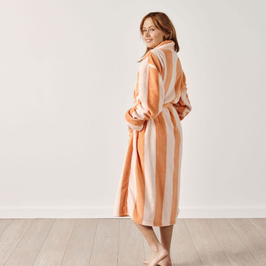 The Ocean City Bathrobe Range Caramel by Linen House Lifestyle is made from a luxuriously soft and absorbent fabric for supreme comfort, our easy-care, peel-free plush robe comes with a belt and hand pockets. This fabulous robe also comes in two sizes, Medium to Large (to fit most individuals) and Extra Large (generously sized). Please note, this product is not ideal for use straight from a shower. Also available in other colours.