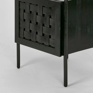 Santorini Hamptons Timber/Rattan Bedside Table Black