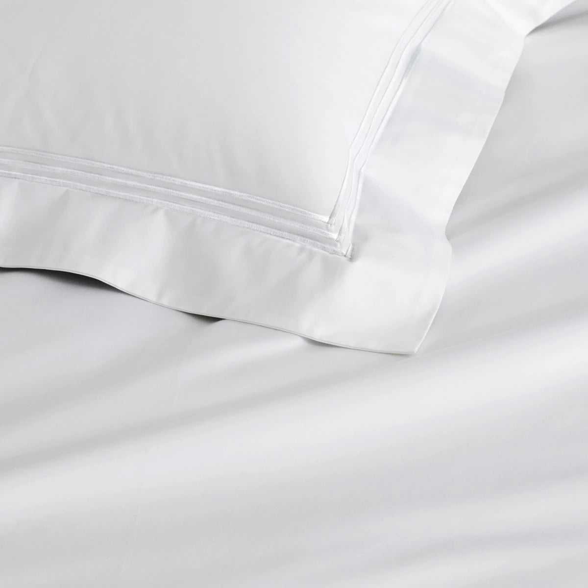 Palais' brilliant white 1200 thread count cotton, spun from superior long-staple fibres, creates a lustrous sateen weave for luxuriously soft next to skin comfort. The generous 5cm borders are trimmed with Palais' trademark triple stitched embroidery, available in a range of designer colours. Create a stunning bed of tailored simplicity with Palais.