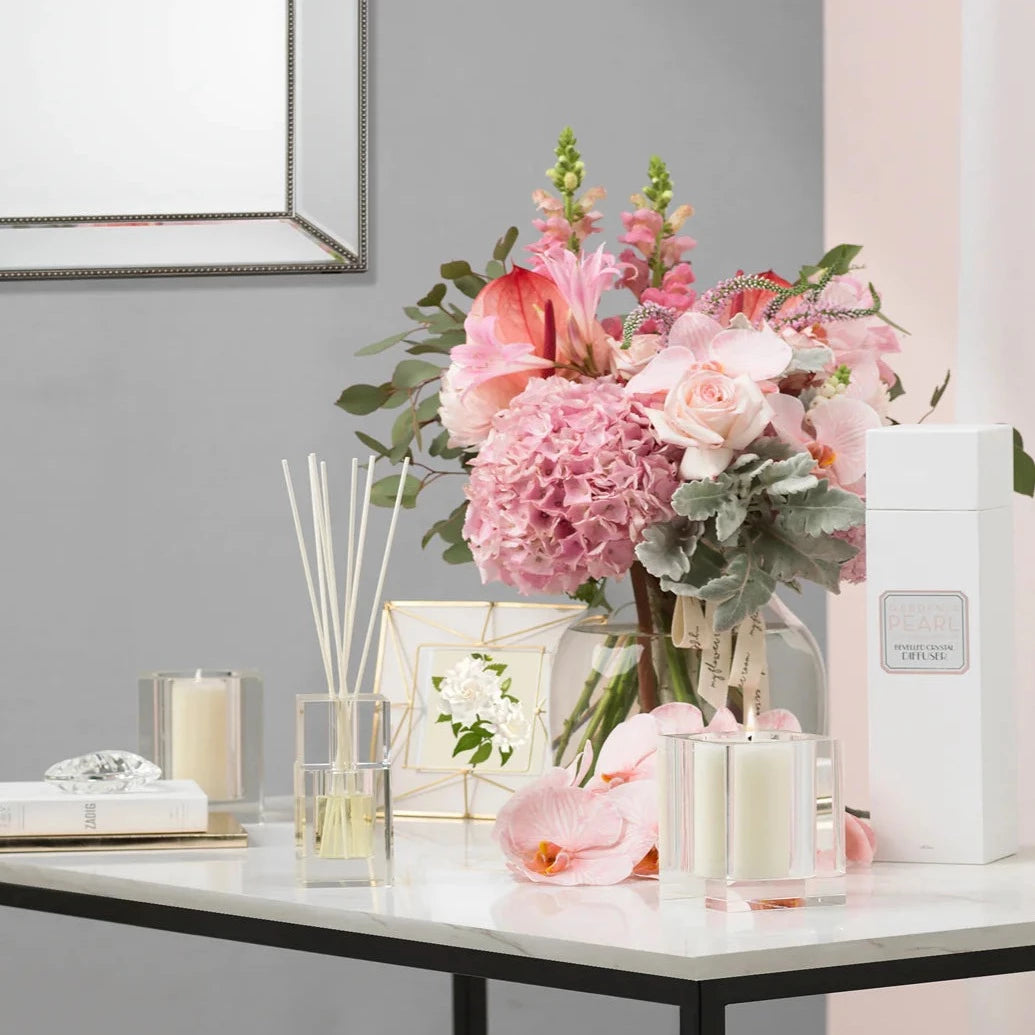 Gardenia Pearl 220g Bevelled Crystal Candle by Abode Aroma