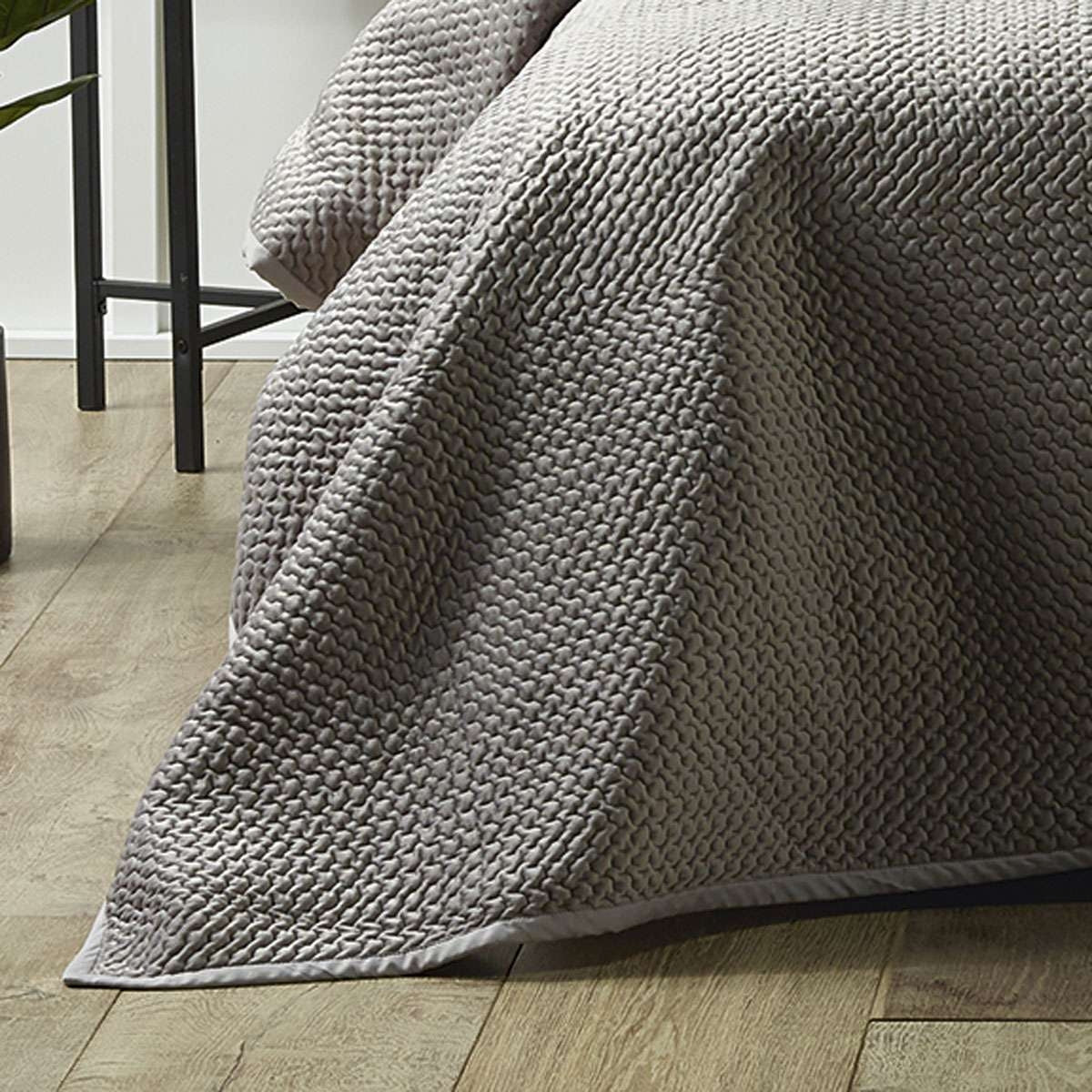 Silky smooth velvet is timelessly quilted on a stone coloured textured fabric. This colour allows for this coverlet to match any décor. Add a variety of cushions from our vivid coordinates range to complete the look.
