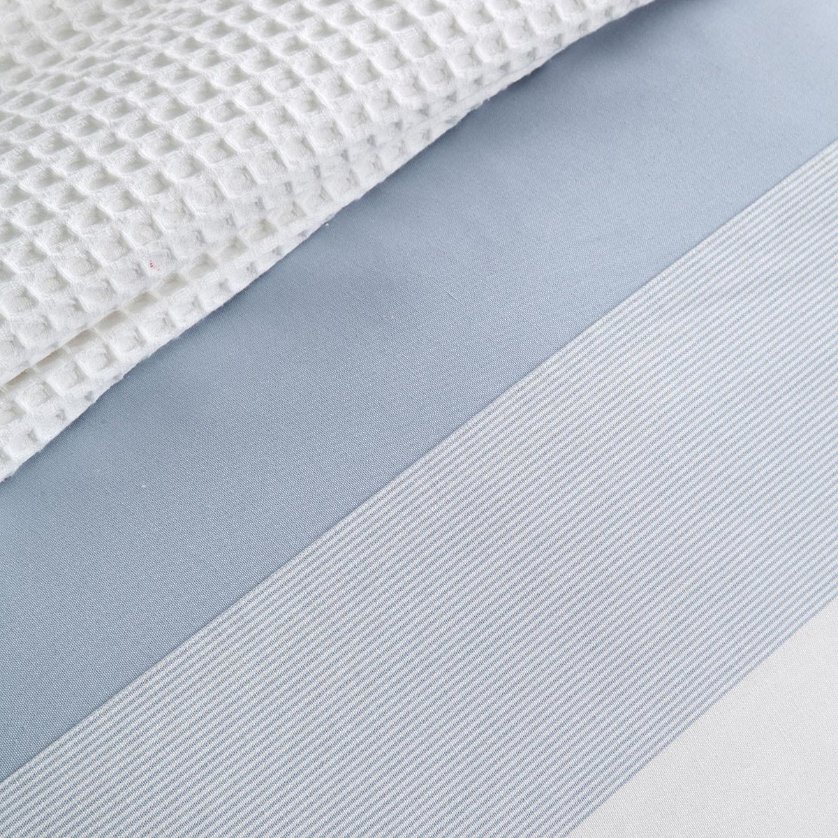Quilt Cover + Pillowcase (front) yarn-dyed cotton/polyester jacquard (horizontal), (reverse) plain dye polyester/cotton in sky,