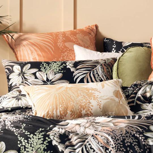 A hand-painted botanical with seventies undertones, Harlow is printed on a black cotton sateen ground with a subtle sheen.