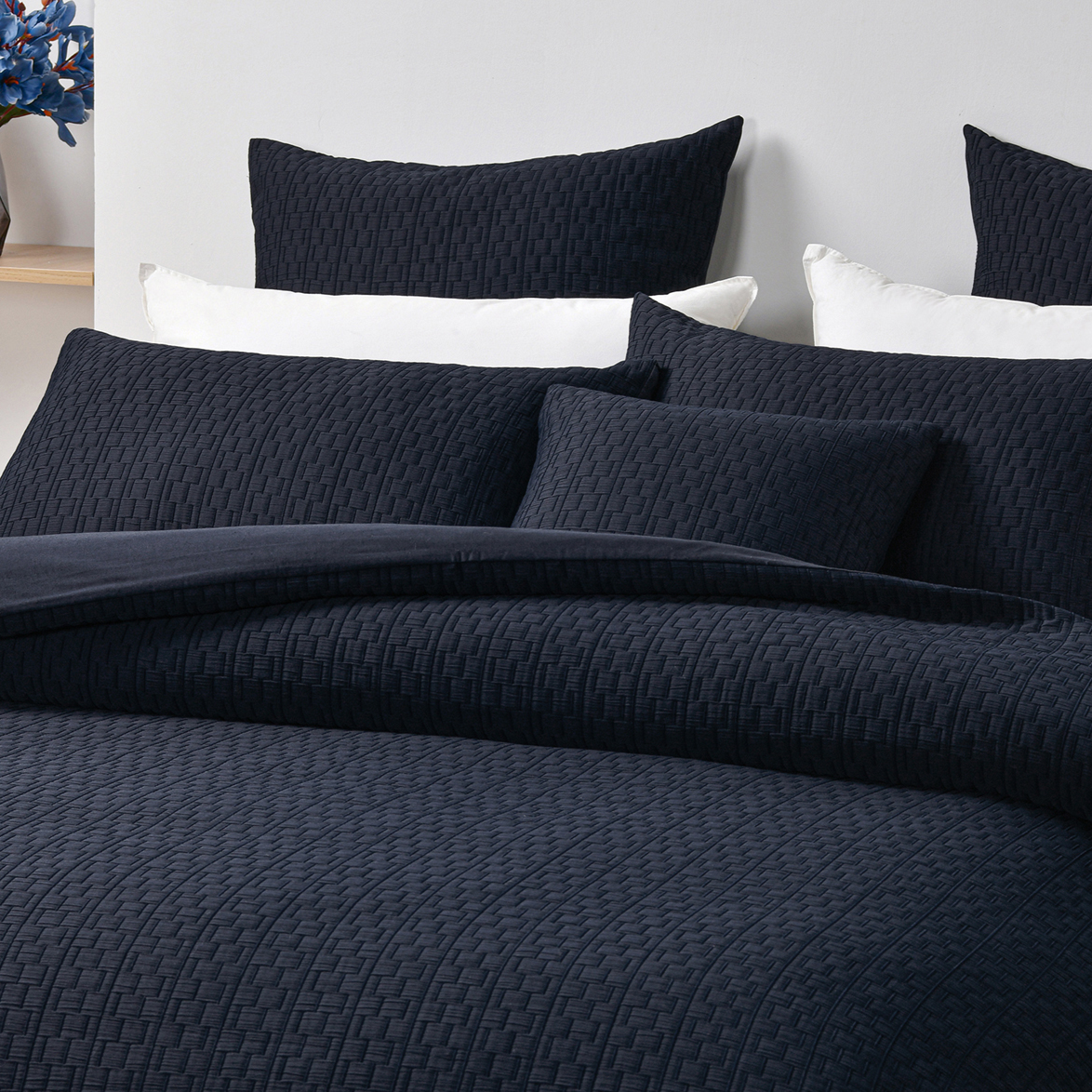 A simple yet classy jacquard design. This european pillowcase Features a soft to touch easy care fabric in an elegant ink colour way.