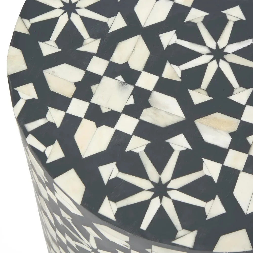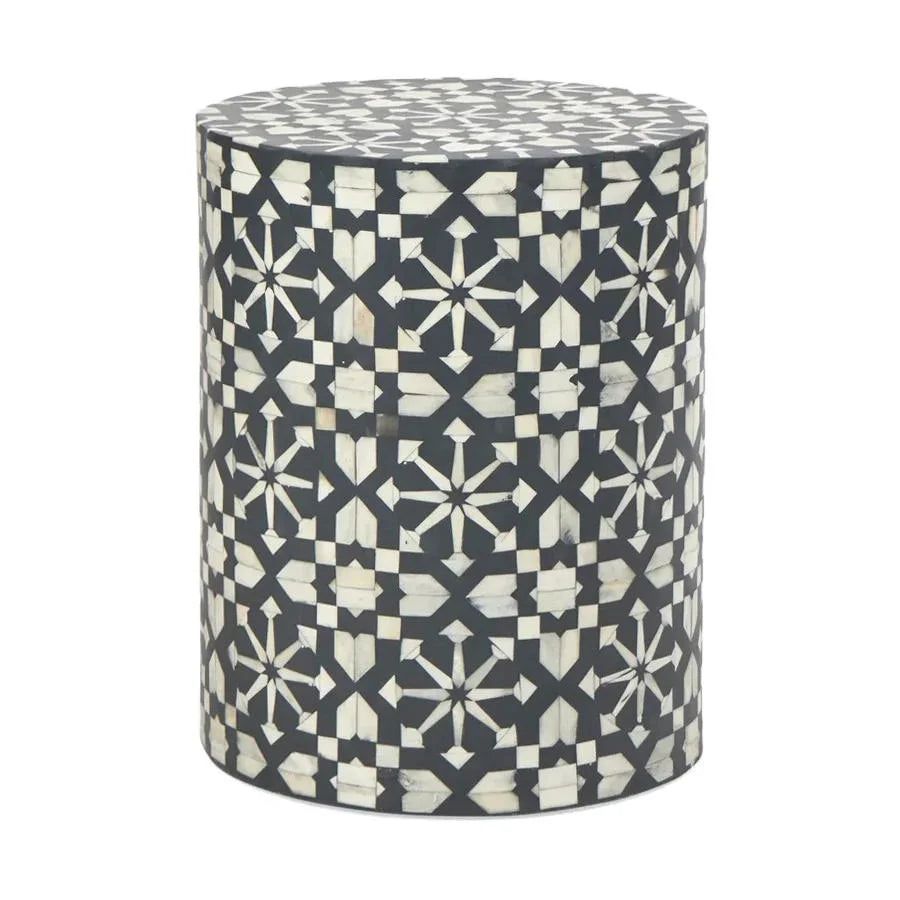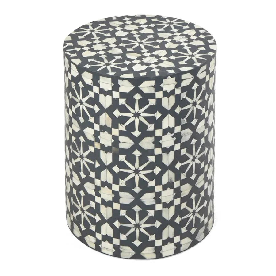 Transport your interior space to new heights with the exquisite Adina stools, serving as the perfect side table or bedside companion. Choose from an array of luxurious hues including Aqua/White, Peach/White, and Grey/White. Handcrafted with ethically-sourced buffalo bones from India, each piece exudes its own unique charm. This sophisticated and time-honored artisinal technique, originally reserved for the opulent palaces of Rajasthan, India, involves months of meticulous hand-carving and placement of buffalo bone fragments in a stunning mosaic pattern. The final touch of resin adds a touch of elegance and completes this masterful work of art.