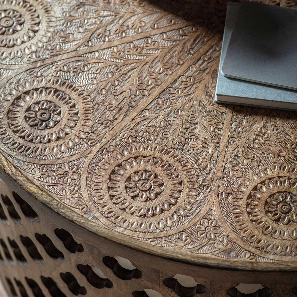 Give your living room decor a timeless, alluring touch with the Jaipur Coffee Table Natural by Florabelle. Handcrafted from mango wood, this round coffee table features a beautiful cut-out detailing in its base for a unique, sophisticated visual. Enjoy the timeless beauty of natural wood for your home.