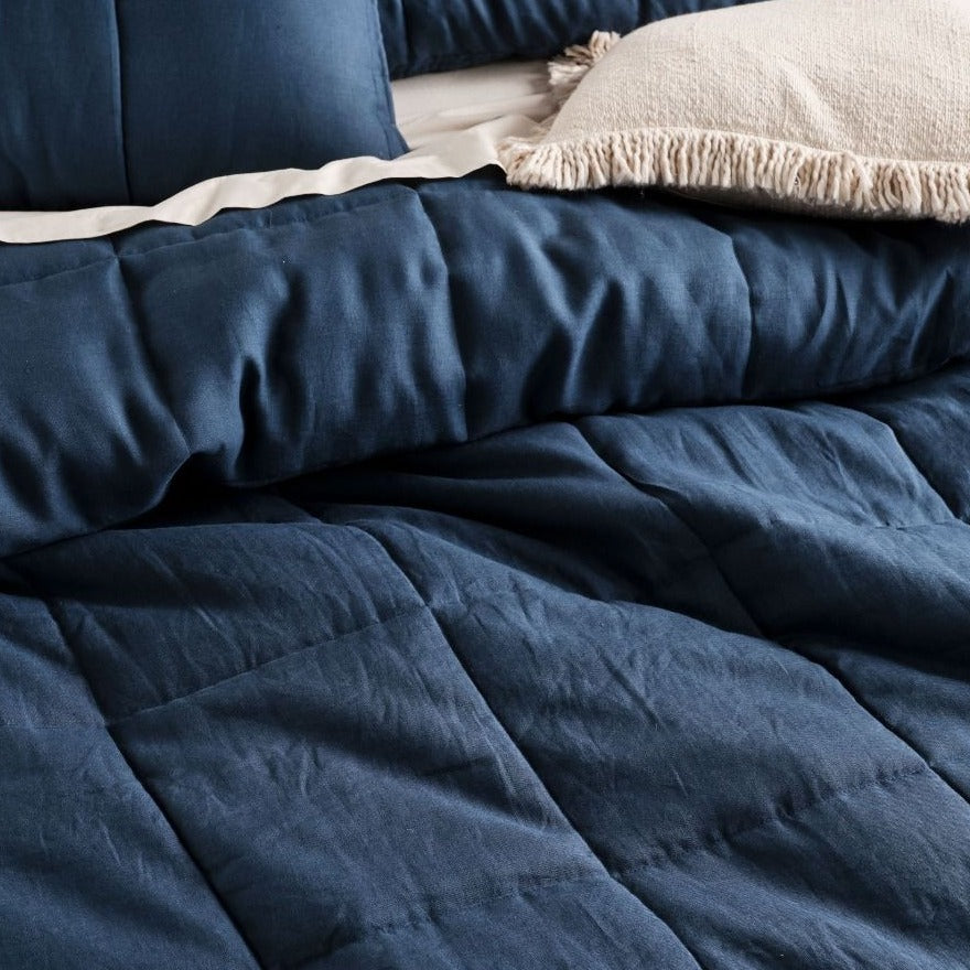 The Nimes Linen Coverlet Nightfall by Linen House Lifestyle features a timeless appeal of linen and brings a rustic aesthetic to modern living. With its vintage look and drape Nimes is suitable all year round. Pre-shrunk and stonewashed, it is soft to touch yet more durable than cotton, laundering well, softening further over time and requiring little to no ironing.
