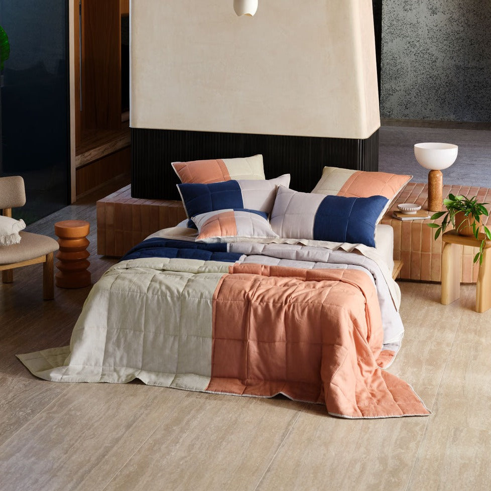Nimes Patchwork Navy Linen Coverlet by Linen House