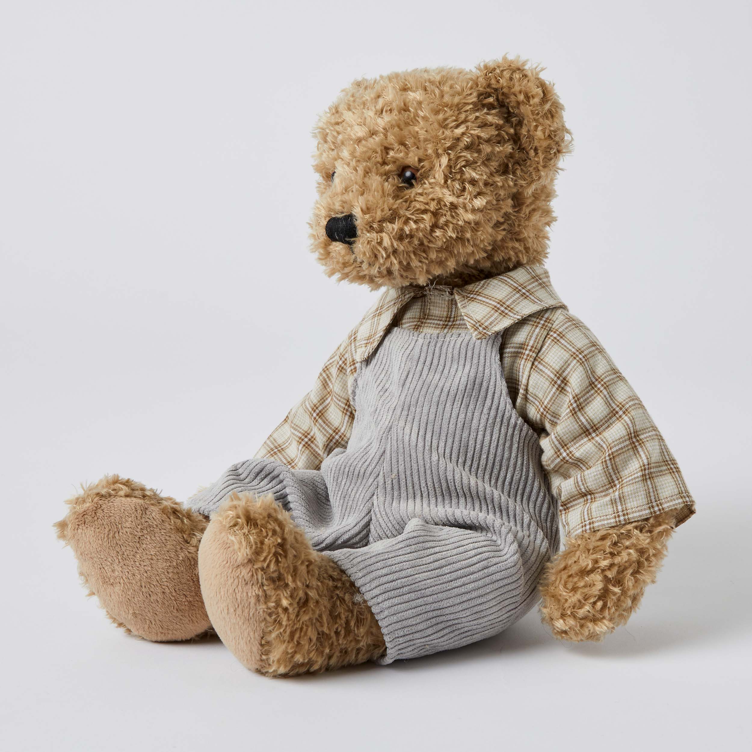 Chester is wise and always gives the best advice! Often referred to as “Papa” bear, he wears a grey corduroy overalls and woven check shirt. Chester is made from premium quality plush faux fur fabric.