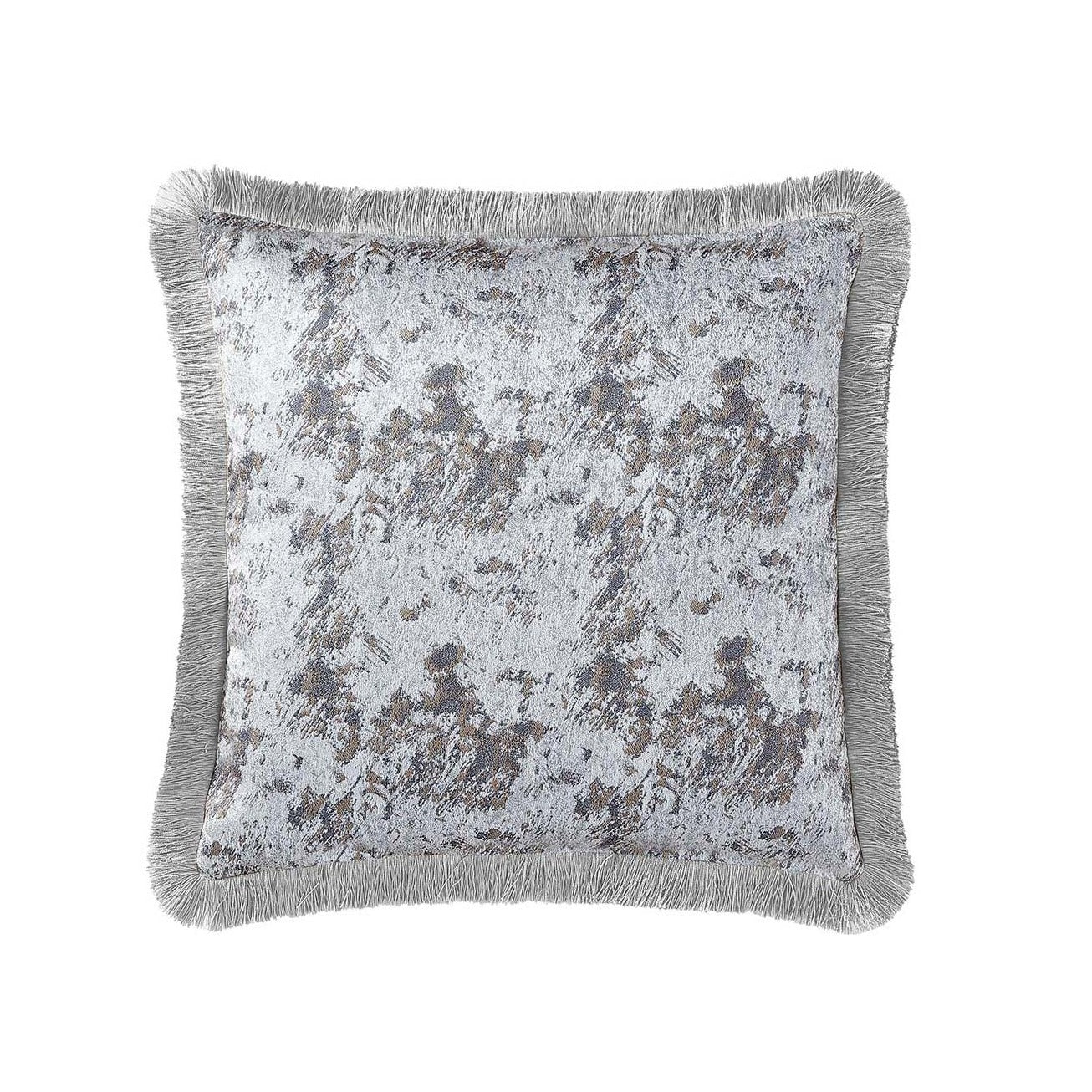 Trieste Silver is contemporary luxe. The jacquard weave incorporates metallic threads for lustrous shine and subtle glamour. Self-flanged edges are elegantly tailored with cord piping on the quilt cover and pillowcases, while the co-ordinating European pillowcases and square cushion are trimmed with thick silver fringing.