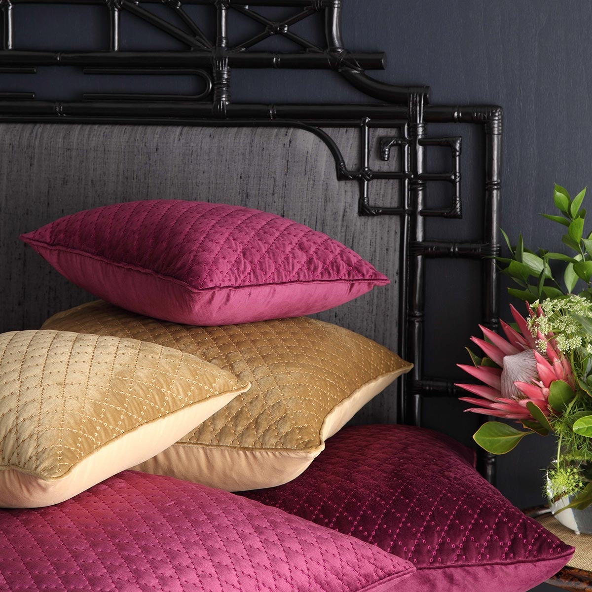 Antique Lattice velvet accessories add a layer of luxury to your decorating. Soft and warm, the front is embroidered in a lattice pattern, with edges trimmed in velvet covered piping.