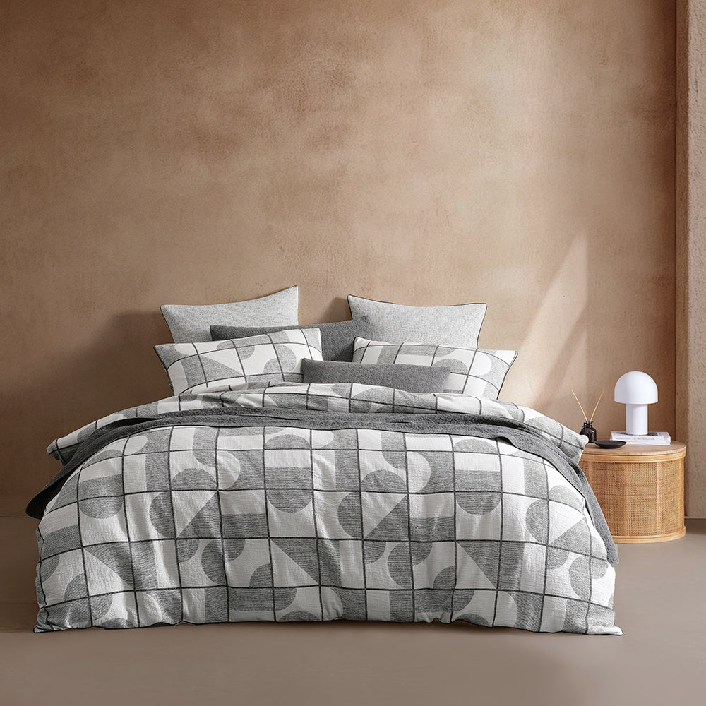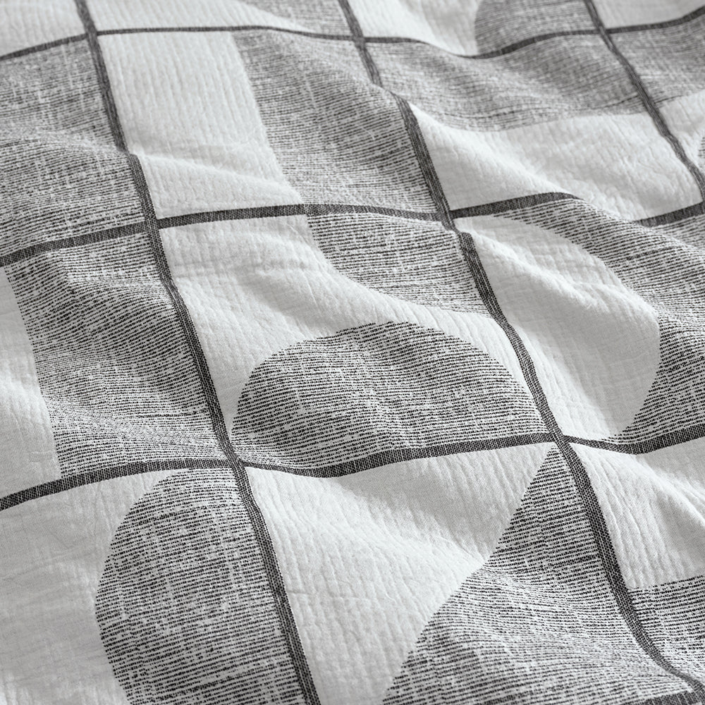 Remington makes a bold statement with abstract checks and random shapes. Its matelassé texture layered with an organic weave adds depth, while the black corded trim delivers a sleek, modern finish. Pair with European cushions that emphasize the organic texture for a contemporary, sophisticated bedroom look.
