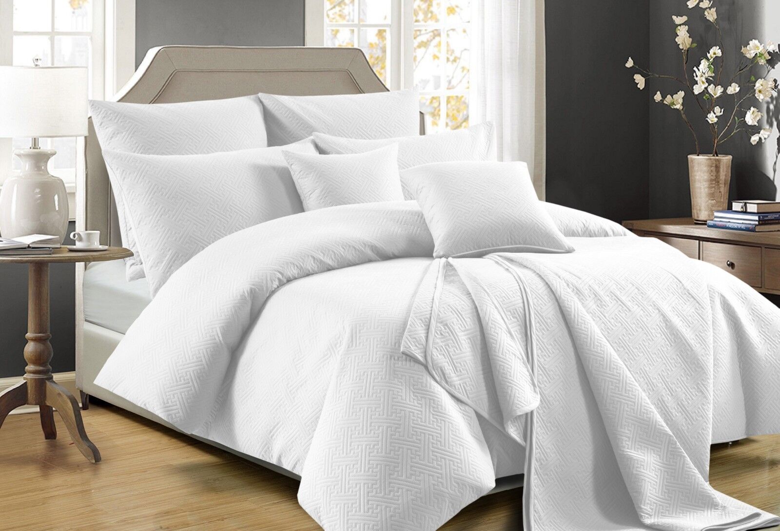 Zeus White Coverlet Set Queen/ King by Perle