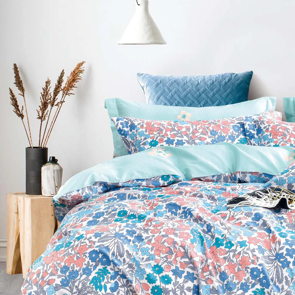 Isabelle Multi Quilt Cover Set by Ardor features blues and pinks which are every girls dream for a bedroom makeover. Isabelle Multi features bright floral blends lilacs and pinks perfectly to create a modern floral design.