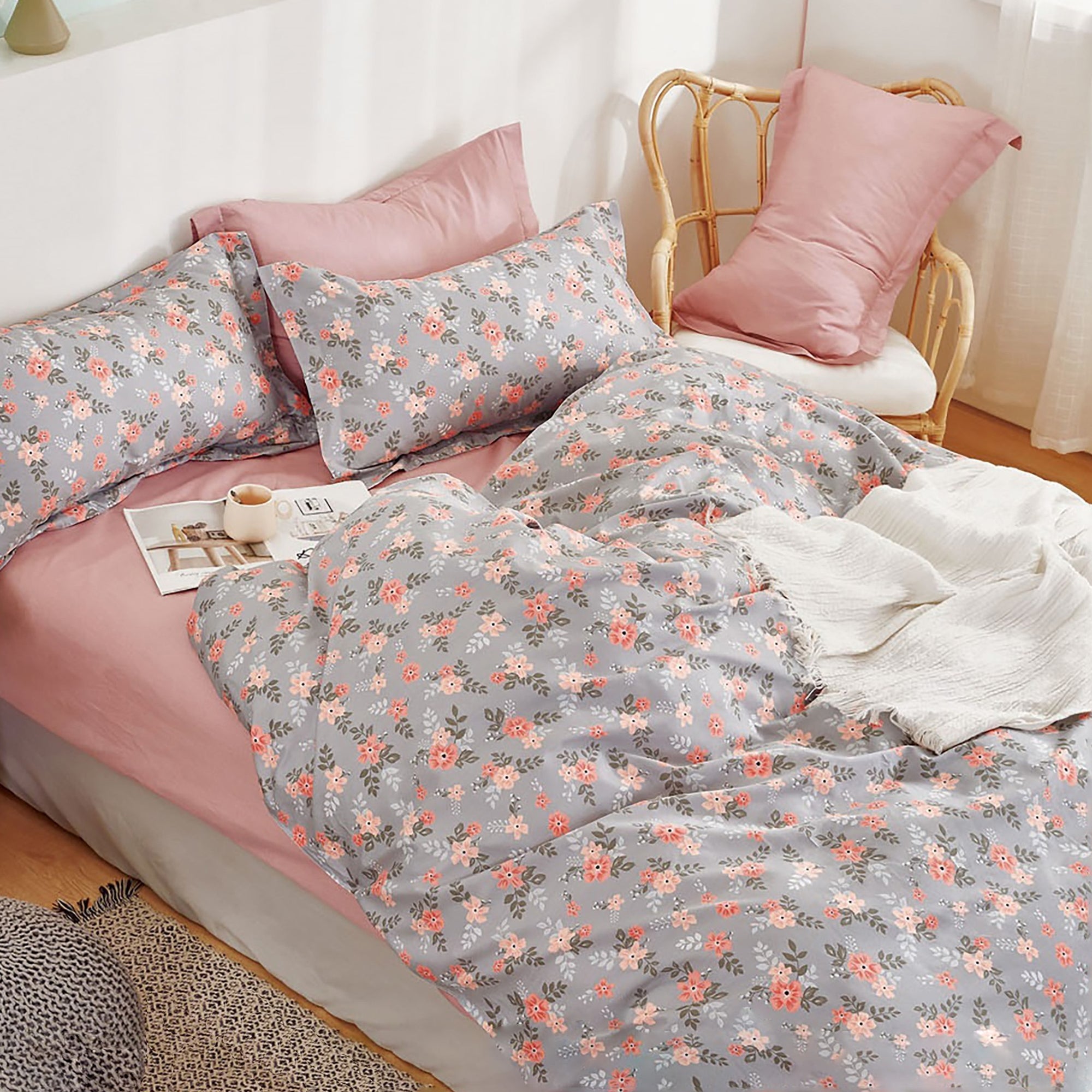 The Nellie Quilt Cover Set features a dainty, floral graphic and blush reverse printed on 250 TC Cotton Sateen, making it as comfortable as it is youthful and feminine.