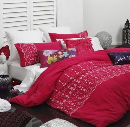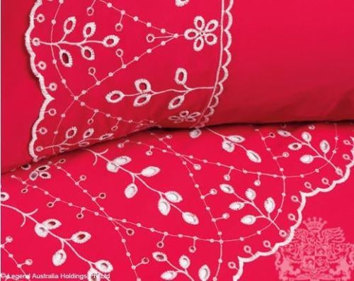 From the Logan & Mason Platinum collection this bright and colourful quilt cover set is a bright hot pink colour with White Laser Cut and embroidery detail.