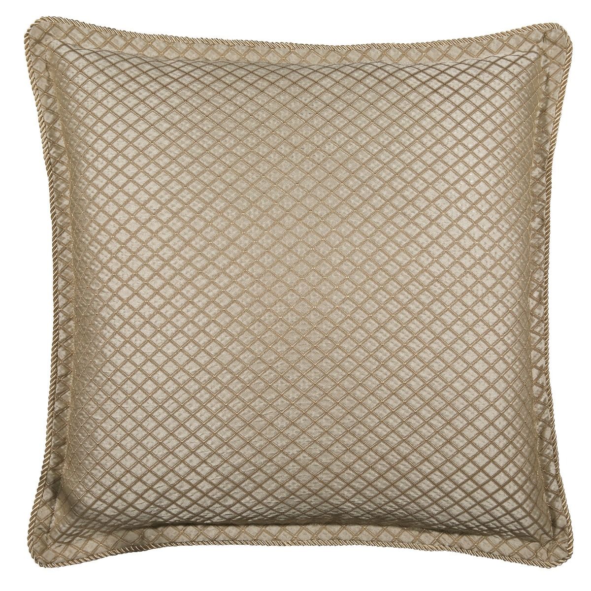 The shot-satin-look fabric is embellished with diamond quilting in contrasting thread. Self-flanged edges are trimmed with a twisted rope cord. Settle back on this cushion to instantly feel pampered.