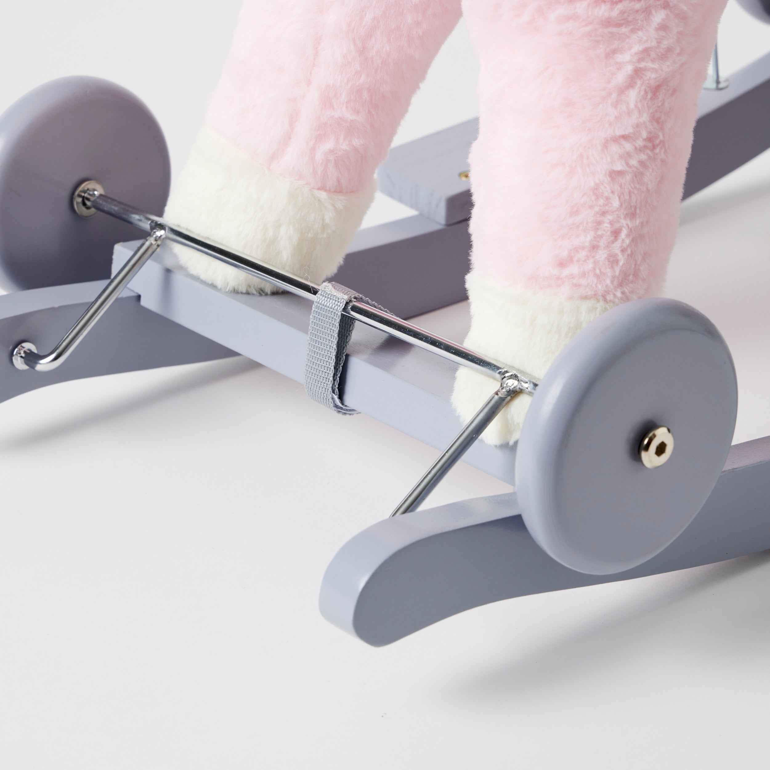 This high-quality, super cute Rock N Roller will make a perfect addition to any child’s bedroom or playroom. Featuring a sturdy wooden rocking base, comfortable easy grip handles, and a soft plush finish for optimal comfort. With foldable wheel sets, this rocker can also transform into a mobile ride. Little ones will enjoy hours of fun riding on this wonderful Rock N Roller Unicorn! *Assembly required
