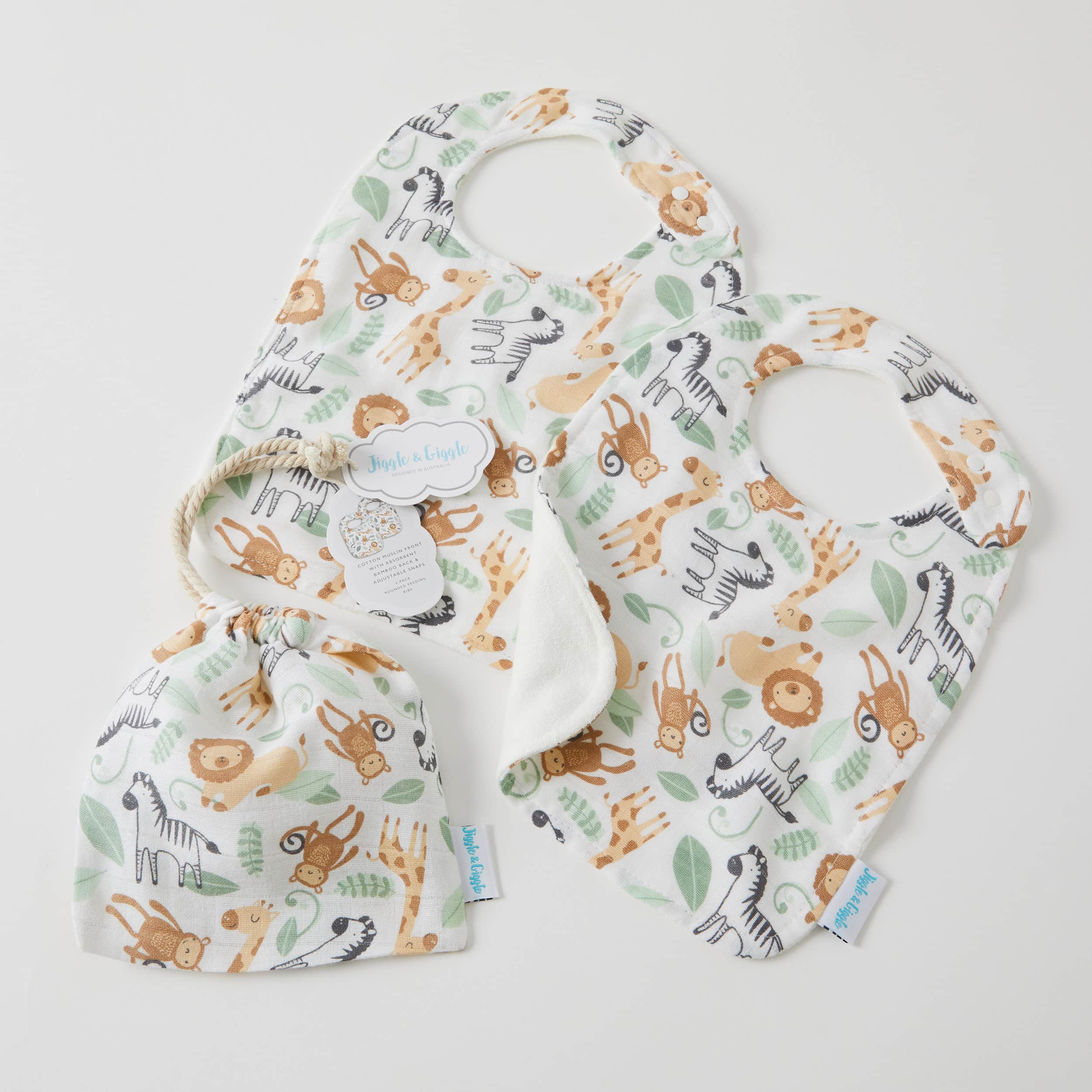 Safari Muslin Bib 2 Pack by Jiggle and Giggle