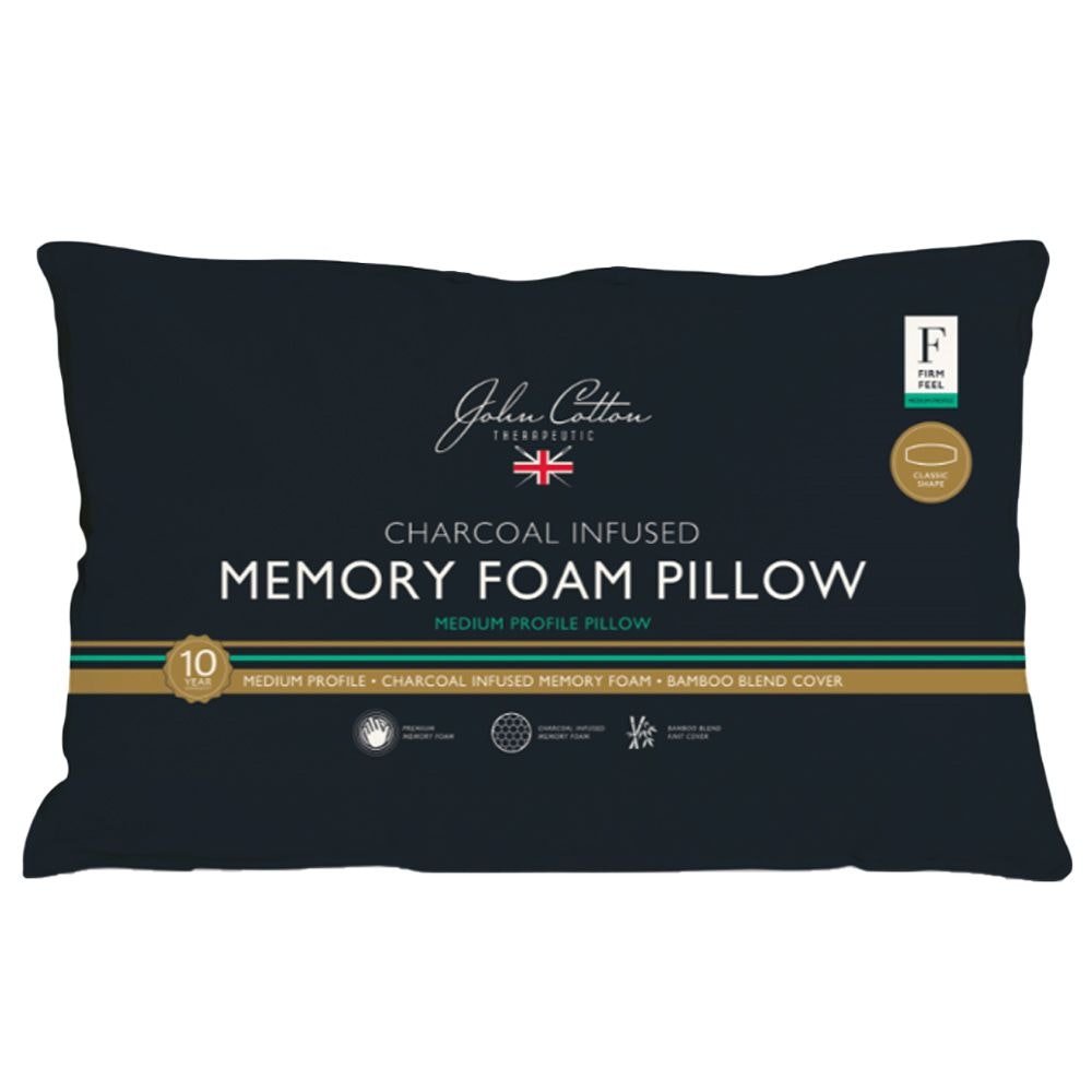 The John Cotton Charcoal Infused Memory Foam Pillow gives you support & comfort, cradling your body to promote correct spinal alignment. Infused with activated bamboo charcoal for a pillow that is on-trend & exciting. In addition, this pillow features a charcoal infused memory foam that is breathable and has increased airflow. The unique charcoal infused memory foam pillow has heat and odor absorbing qualities for a fresh night's sleep.
