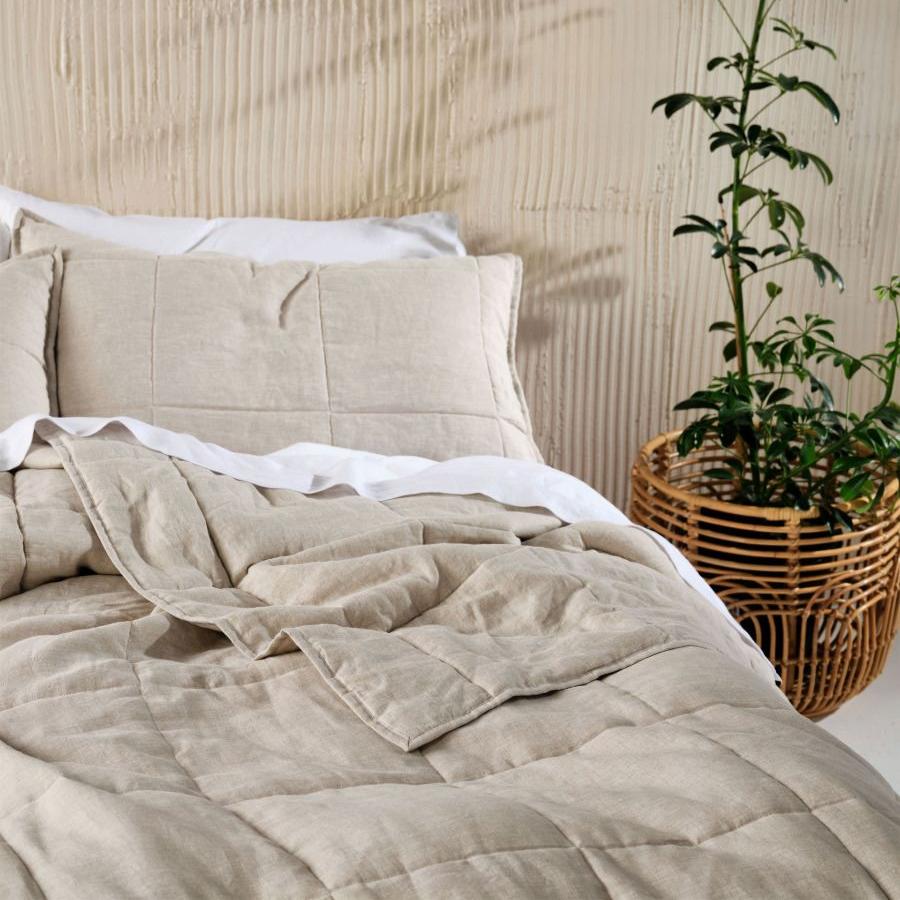 Nimes Natural Linen Quilted Coverlet by Linen House