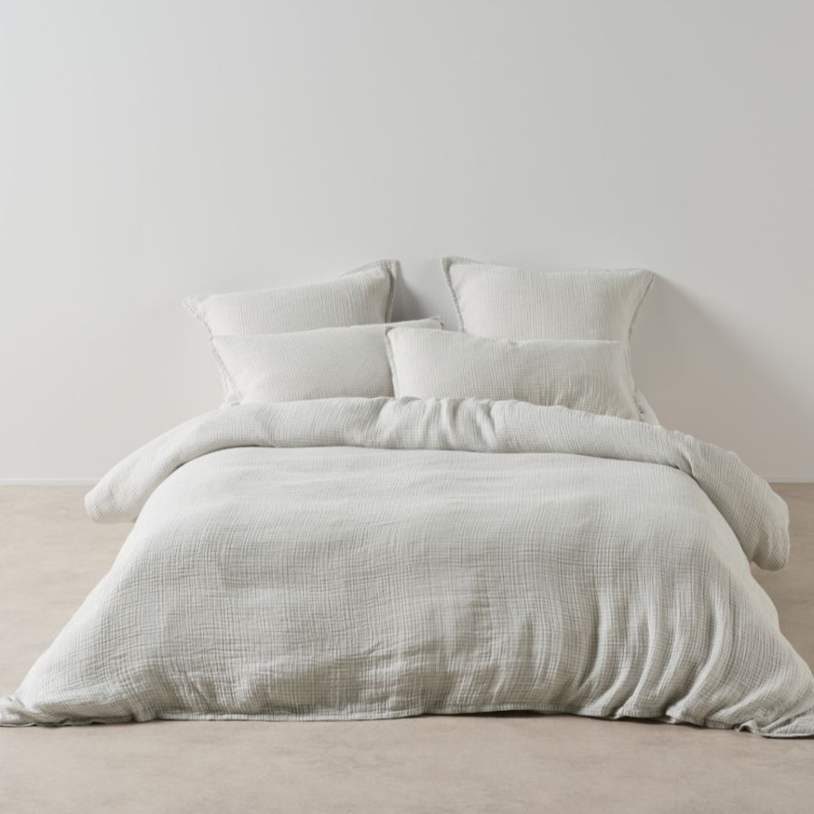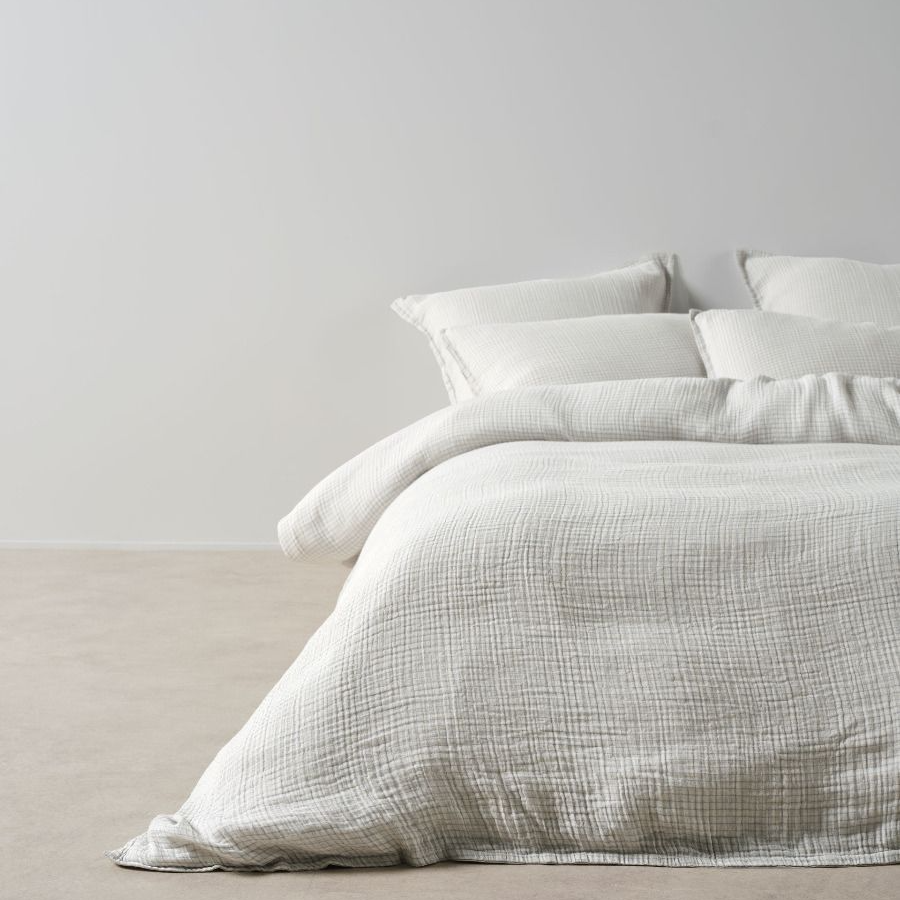 Rohan's crinkled cotton voile is a heavenly soft, textured beauty. Intriguing in design, this check weaves off white with hydrangea-blue, creating a timeless, yet entirely new aesthetic for your bedroom.