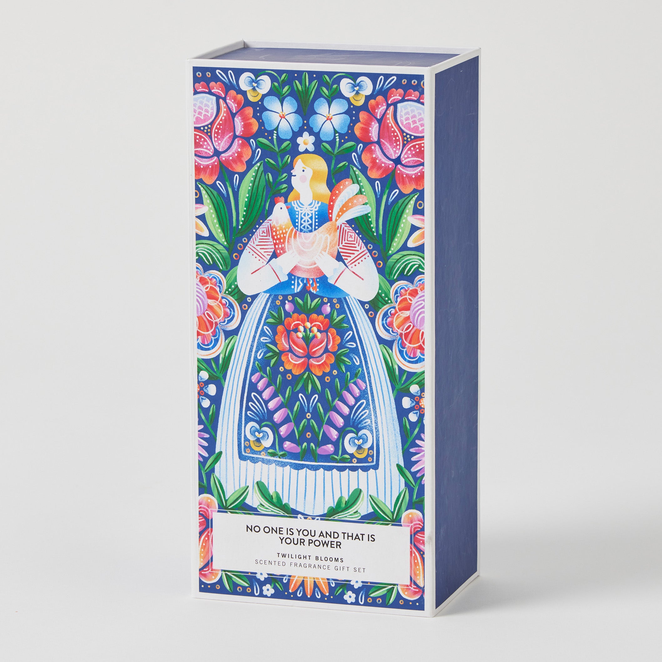 The No One Is You and That Is Your Power Candle & Diffuser Gift Set immerses you in a garden at twilight. The set includes a candle and diffuser designed to effortlessly style in any space.
