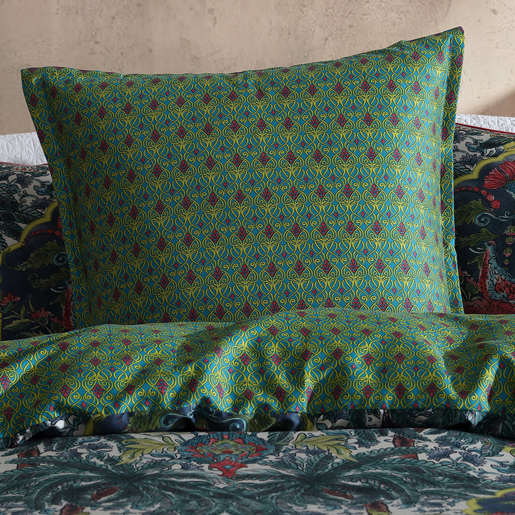 Introducing the Breewood european pillowcase, craft beautifully with an art nouveau inspired pattern in green, providing versatility and a calming backdrop. The design is both bold and inviting, perfect for those who want to make a statement with their bedding while adding a touch of nature-inspired beauty to their space.