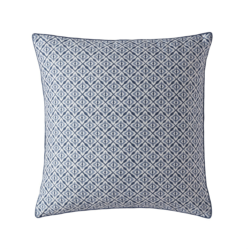 Introducing the Kyuss european pillowcase, an indigo geo print on a crisp white base offers a clean, complementary contrast, perfect for a fresh and modern look. The Kyuss quilt cover set seamlessly blends style and tranquility, making it an ideal choice for a stylish, serene bedroom.