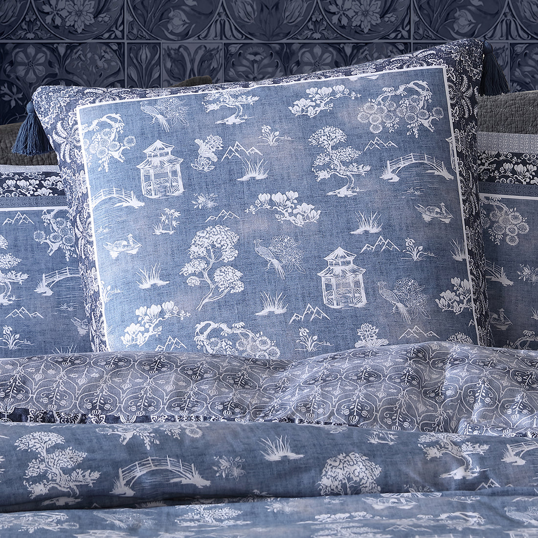 Introducing the Sakura European Pillowcase, where the timeless beauty of Chinoiserie meets contemporary design. This exquisite quilt cover features a striking Oriental aesthetic, combining tonal indigo blues with crisp white to create a sophisticated and modern look. The Sakura European Pillowcase seamlessly blends traditional charm with modern sophistication, making it a stunning addition to any bedroom decor.