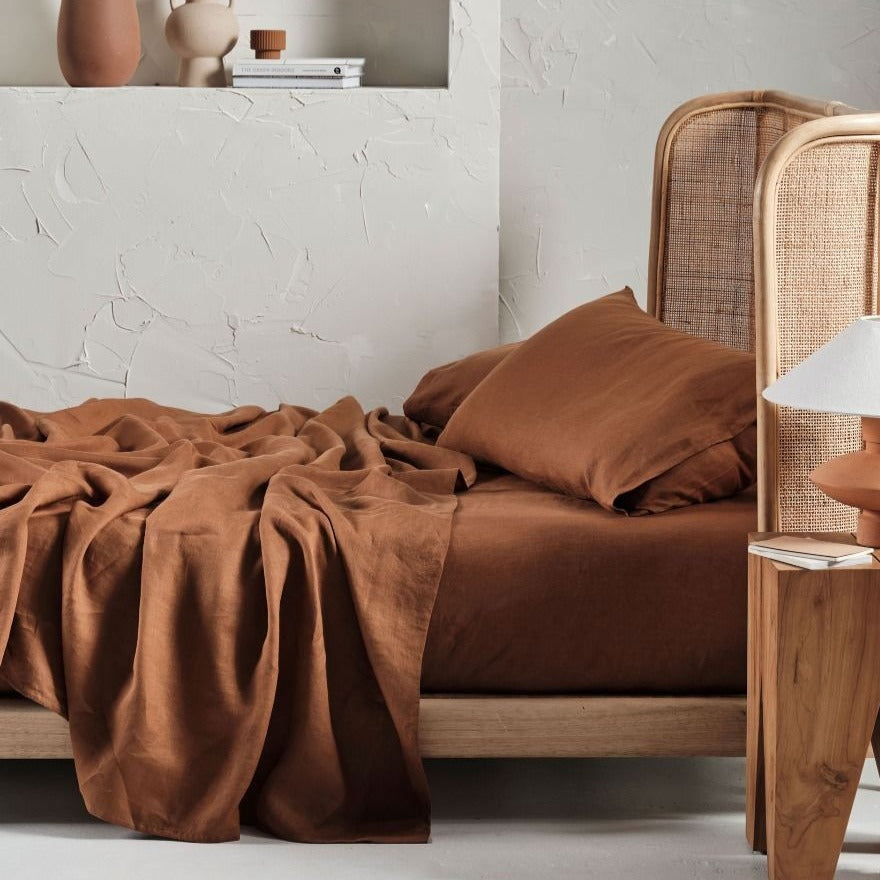 Nimes Pure Linen Cinnamon SHEET SET by LINEN HOUSE