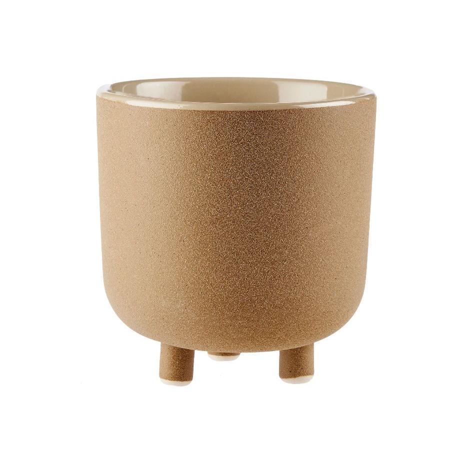 A whimsical planter pot in a soft, earthy tabacco, Kai features a textured exterior, glossy interior and quirky legs for a stylish finish.