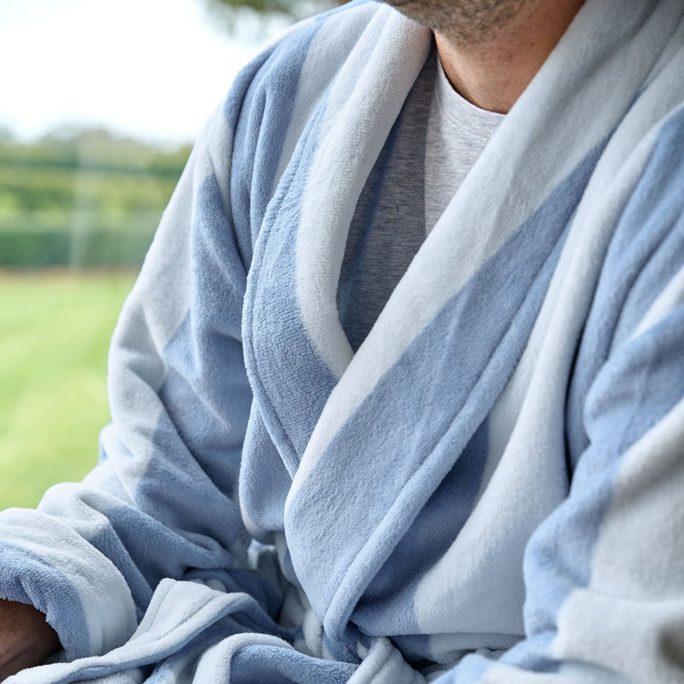The Ocean City Bathrobe in Cornflower by Linen House Lifestyle is made from a luxuriously soft and absorbent fabric for supreme comfort, our easy-care, peel-free plush robe comes with a belt and hand pockets. This fabulous robe also comes in two sizes, Medium to Large (to fit most individuals) and Extra Large (generously sized). Please note, this product is not ideal for use straight from a shower. Also available in other colours.