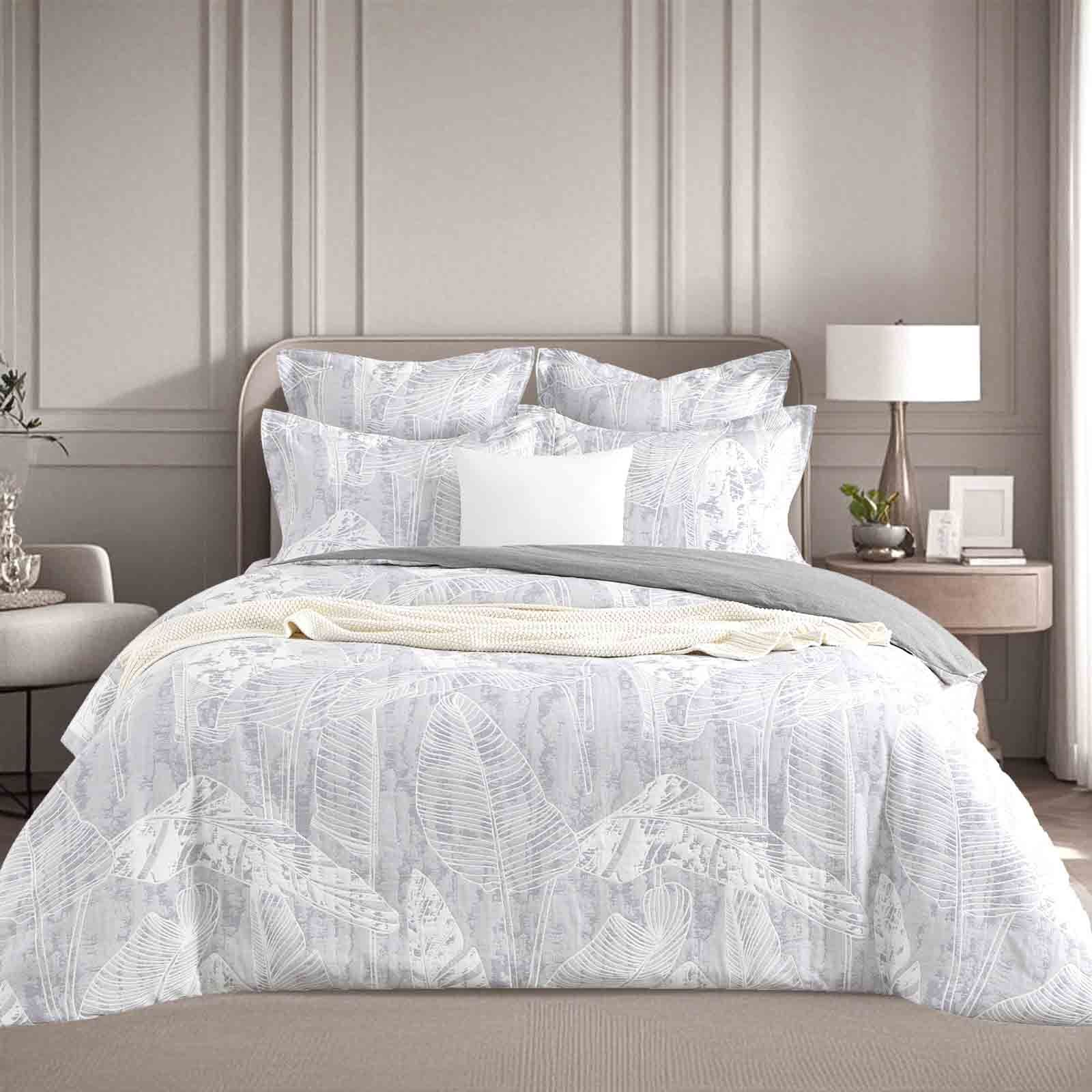 The Panache quilt cover set brings a tranquil elegance to your bedroom with its refined botanical motif in calming beige and soft white tones. Made from a high-quality cotton blend jacquard weave, it delivers a rich texture and breathable comfort suitable for all seasons. This set enhances your bedding with understated sophistication and inviting softness, adding subtle depth and texture while maintaining a clean, polished look.