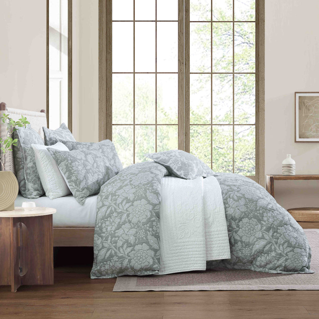 Staying true to Private Collection’s signature style, Julieta features a traditional floral pattern in a timeless colour combination. The interplay of woven textures highlights pops of white on the quilt cover’s face, contrasting beautifully with the earthy green base. The accessories stand out with the fabric reverse, while a simple self-flange completes the elegant look.