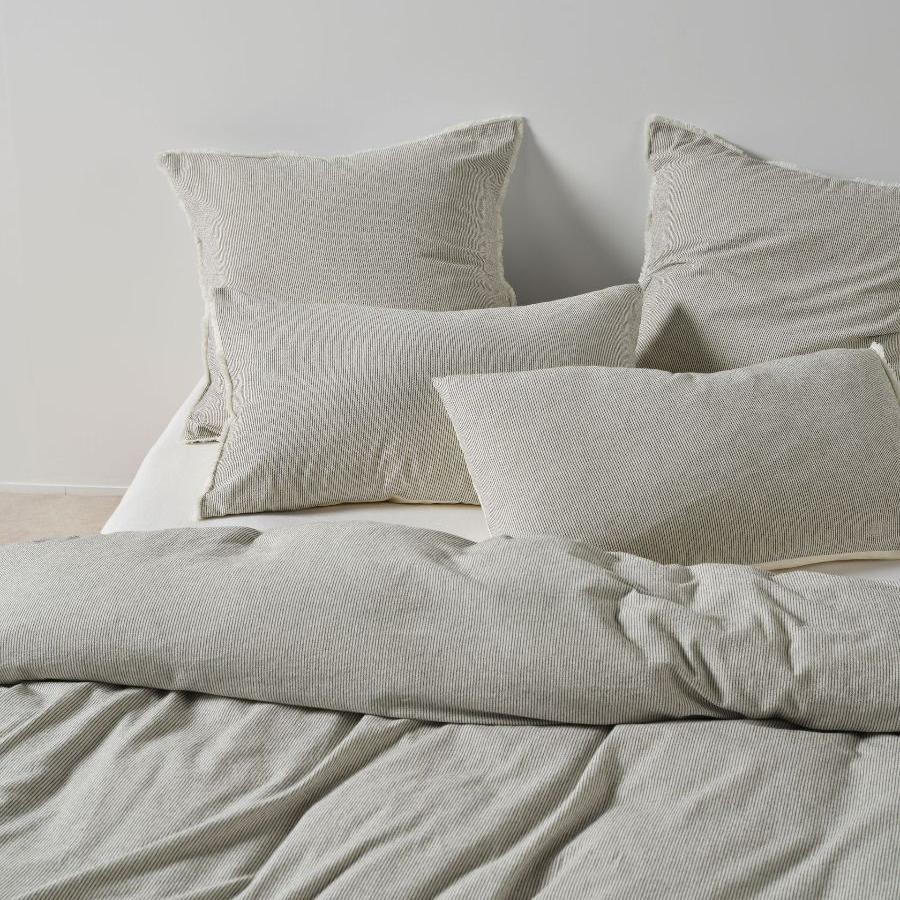 Created to transcend seasons, Macey's timeless stripe is brought to life from yarn-dyed, woven cotton, trimmed with a raw-edged hem for a beautifully relaxed aesthetic. This versatile ensemble in black offers a contemporary, easy-living vibe.