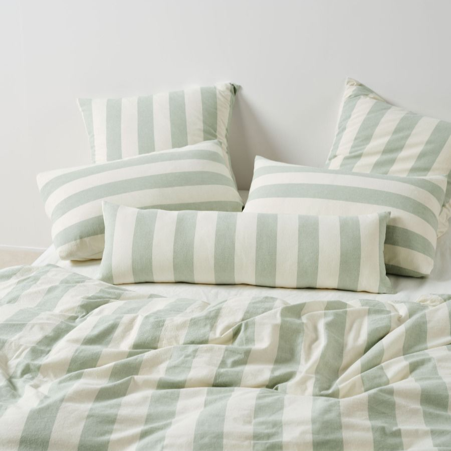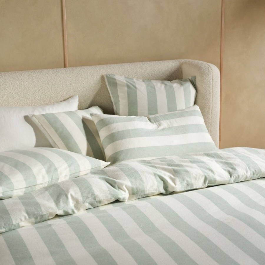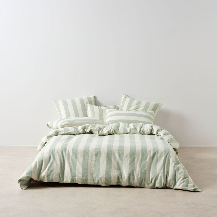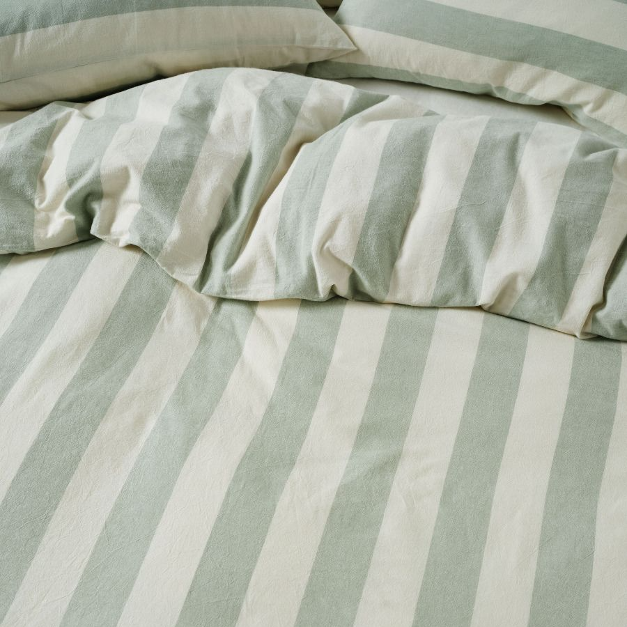 Vintage Stripe Jade Quilt Cover Set by Linen House