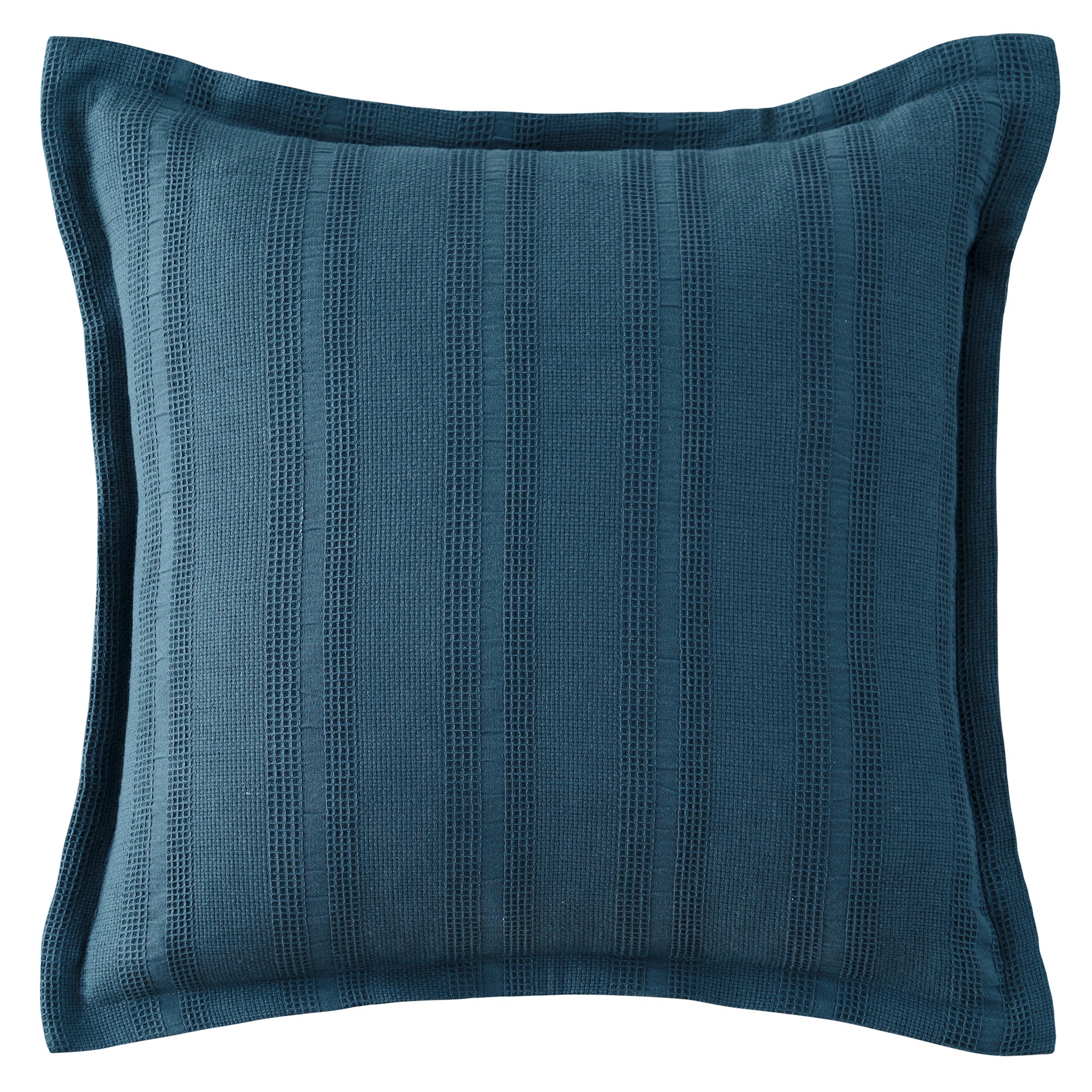 This blue european pillowcase, crafted from yarn-dyed cotton, brings a timeless elegance to any space. Its waffle weave with subtle vertical lines adds texture and depth, creating a look that’s both refined and inviting.