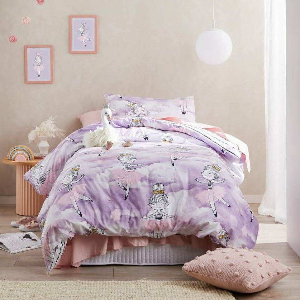 The Dancing In The Clouds Quilt Cover Set Range Pink by Logan and Mason Kids is a cute and playful design. Printed on 100% cotton, it is guaranteed to be a favourite with young girls everywhere.