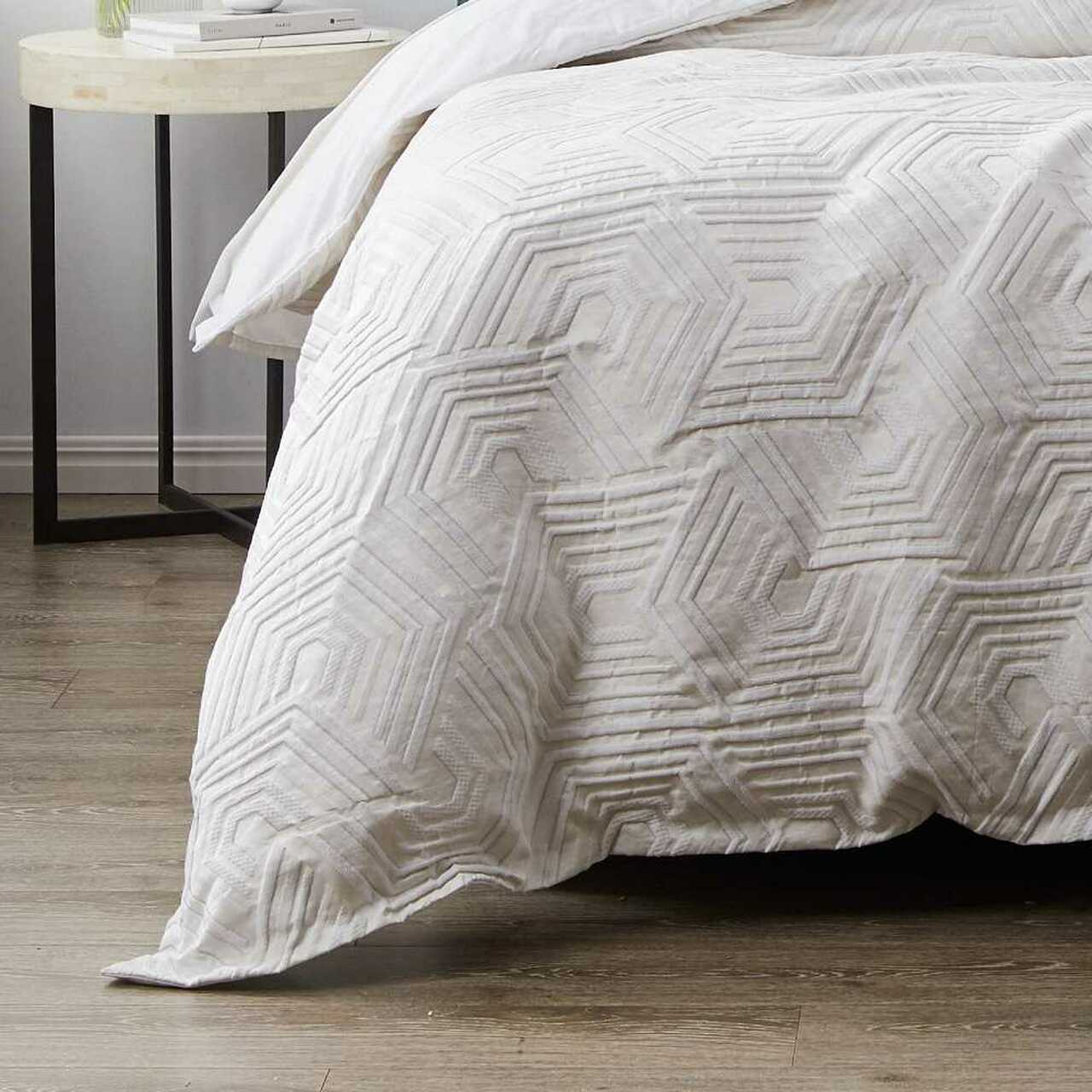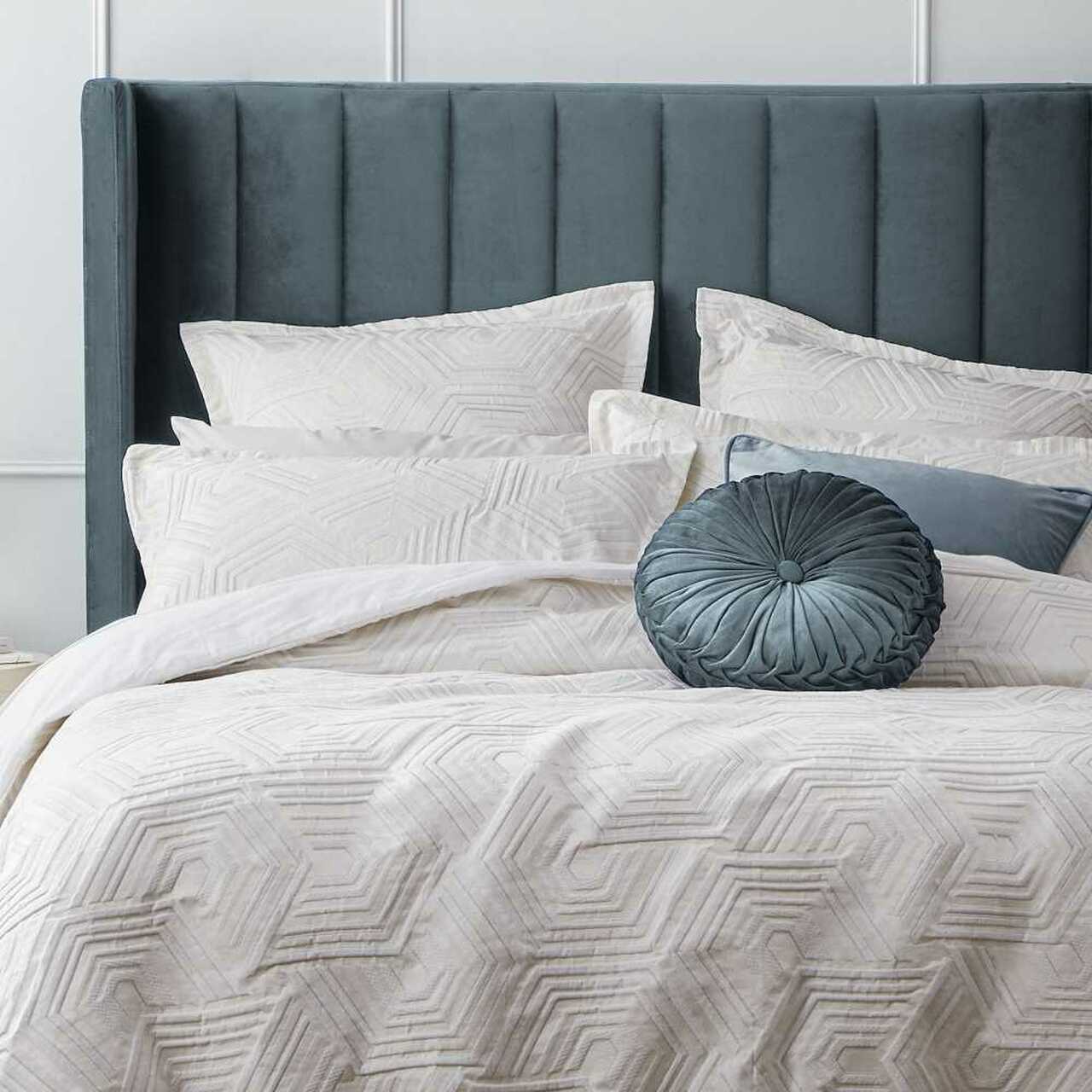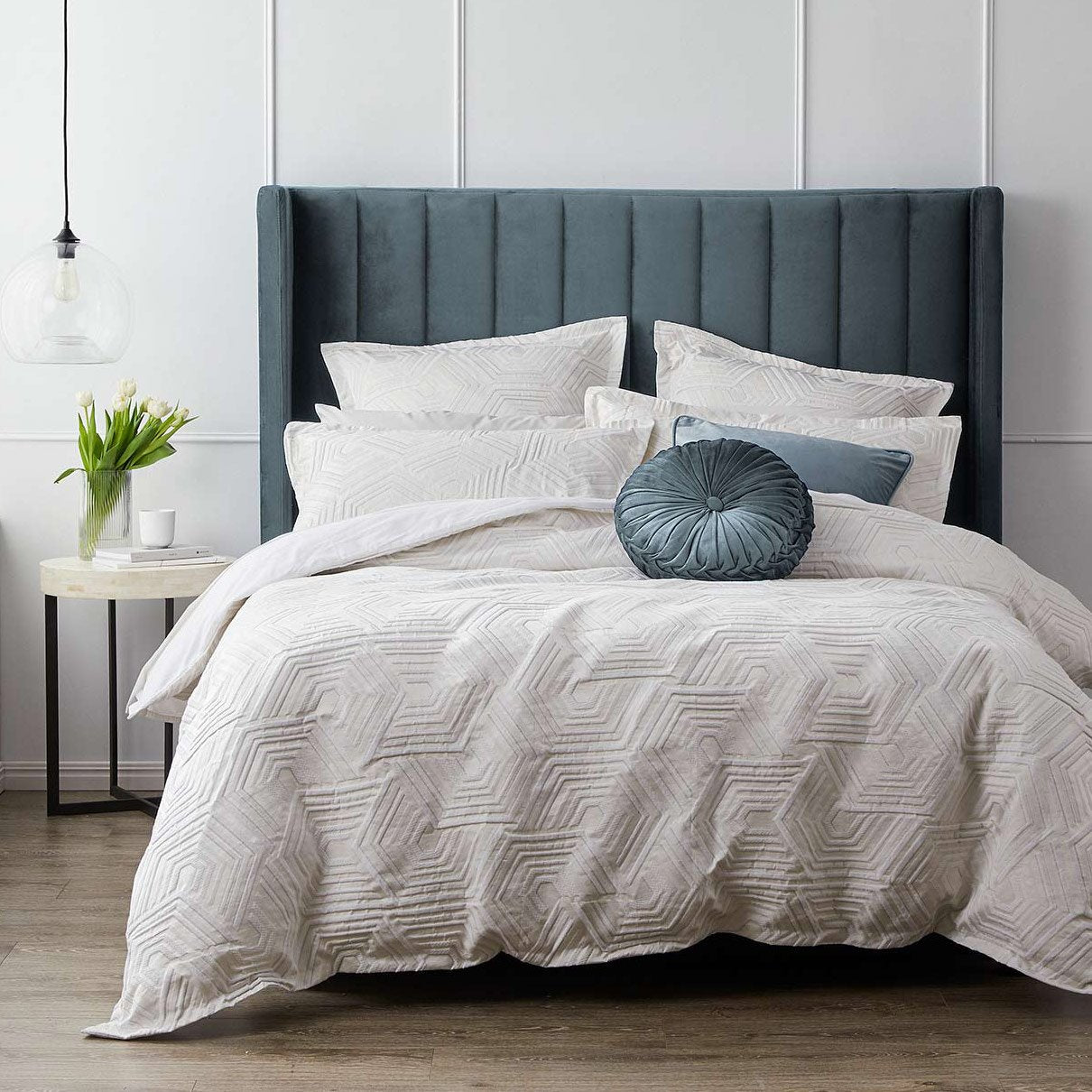 Bree Silver is contemporary luxe. A balanced composition of textures, together with a tonal metallic thread, form a smart, geometric story. Bolster with Bree's matching European pillowcases to complete the look.