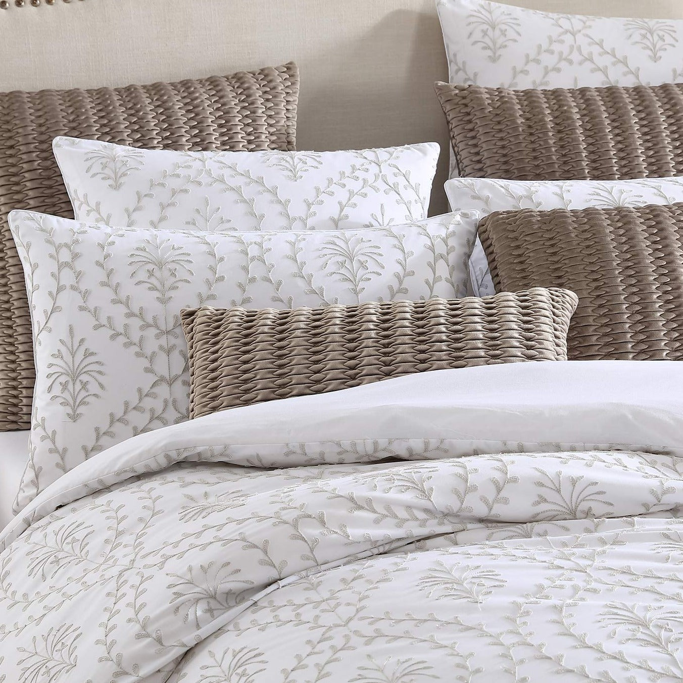 A beautiful bed linen story, Morgan Latte brings romantic, feminine energy to your space. The elegant embroidery design, finished with white cord piping for subtle definition, will create an inviting ambience in any bedroom.