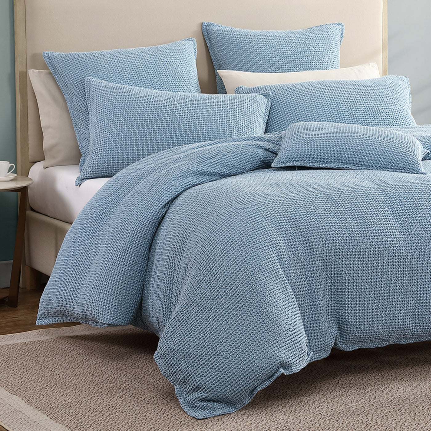 Sure to become an essential staple in homes, this waffle captures chunky texture, versatile styling and comfort all in one. Urban showcases four seasonable colours, Stone, Charcoal, Steel and Surf, stonewashed to enhance the waffle texture and 3D effect.