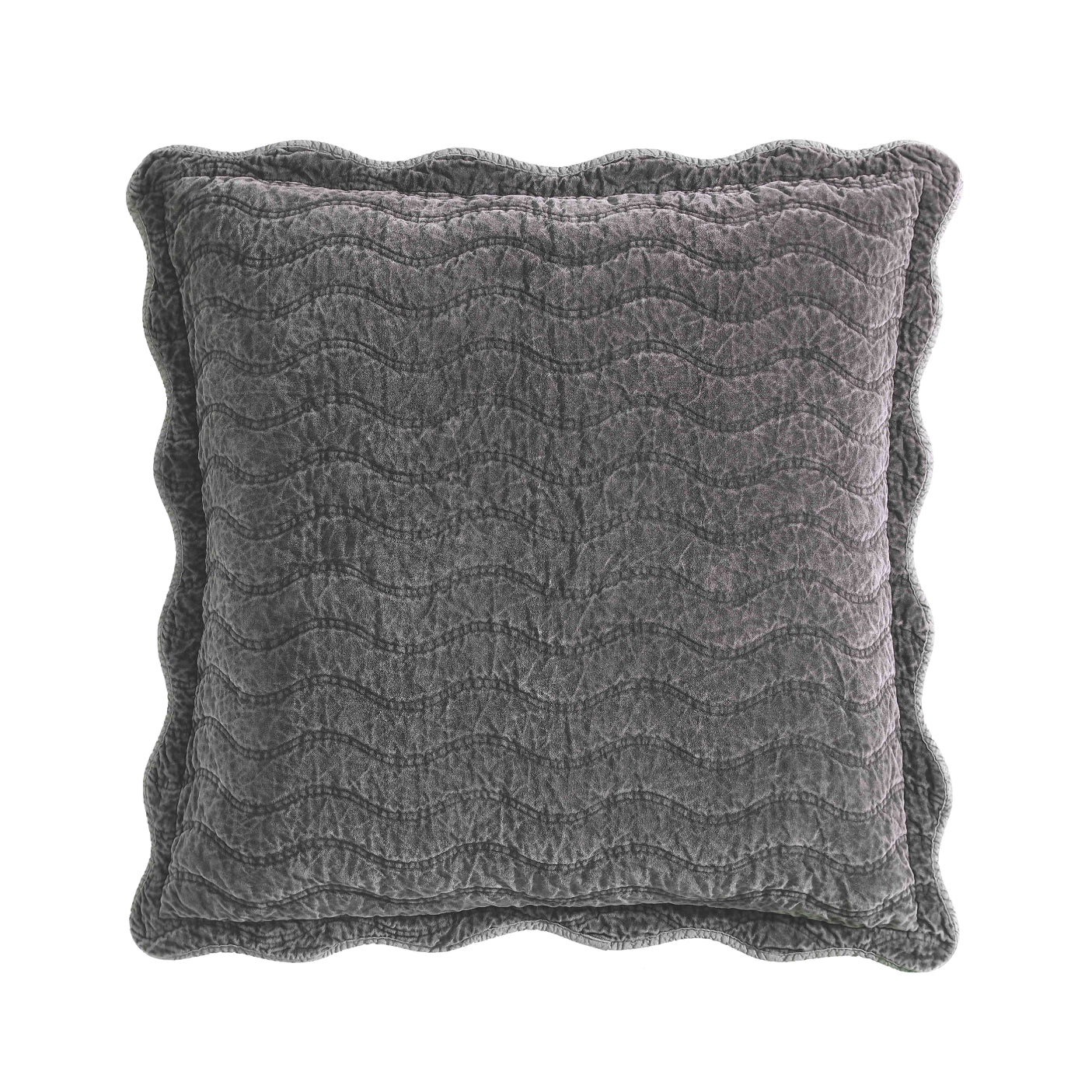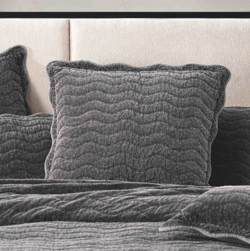 Add a touch of softness and opulence with this classic velvet featuring a modern twist. The striking charcoal is piece-dyed and stonewashed to enhance the depth of colour with a vintage appeal. The simple twin curved quilting is elegantly framed by scallop edging. It’s finished with a cotton-bound edge, stonewashed to provide a sophisticated contrast to the velvet.