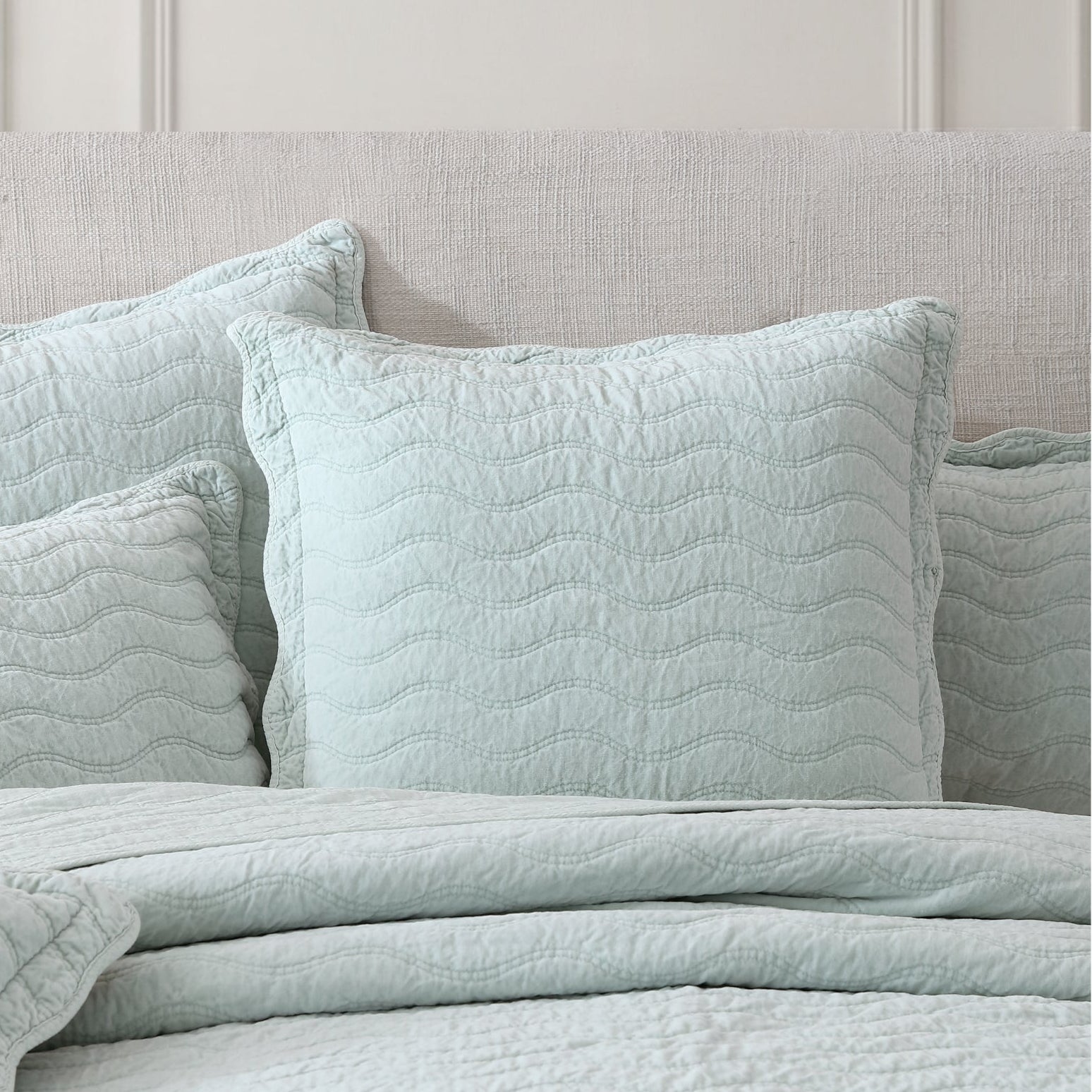 Add softness and opulence to your space with Indiana, a classic velvet coverlet with a modern twist. Available in striking sage, it is piece-dyed and stonewashed for added depth and vintage charm. Twin curved quilting is elegantly framed by scalloped edging, while a cotton-bound edge offers a sophisticated contrast to the plush velvet fabric.
